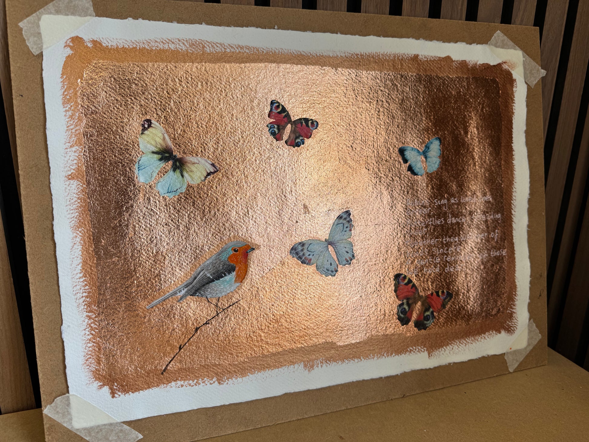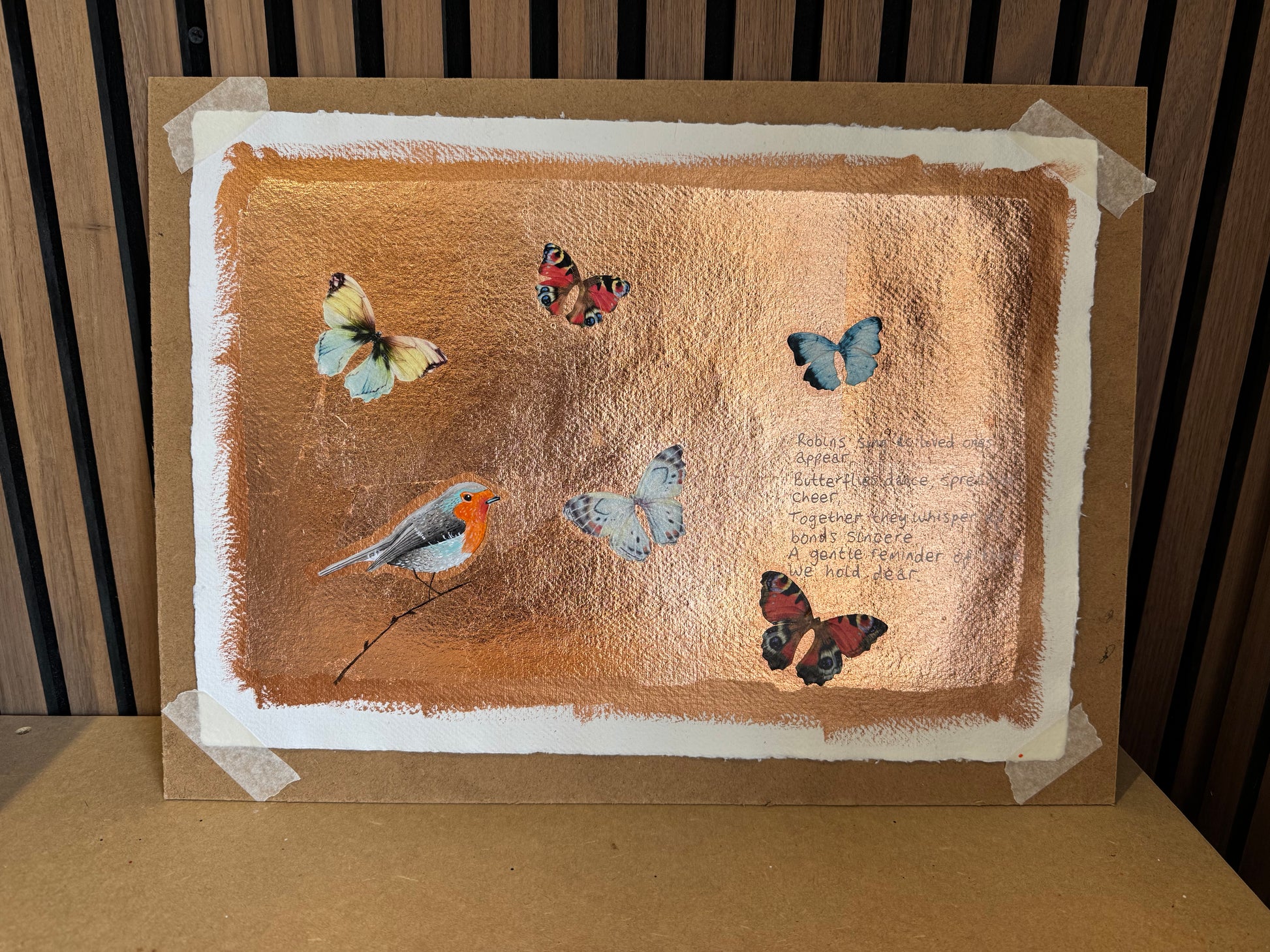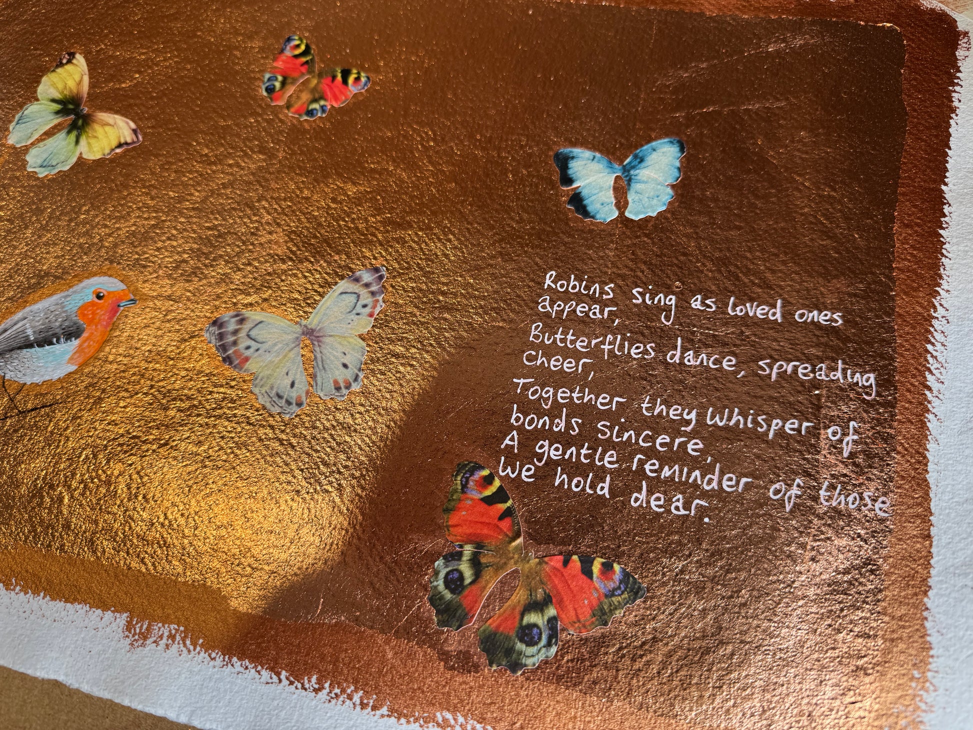 Medium used: Acrylic and copper leaf and collage.