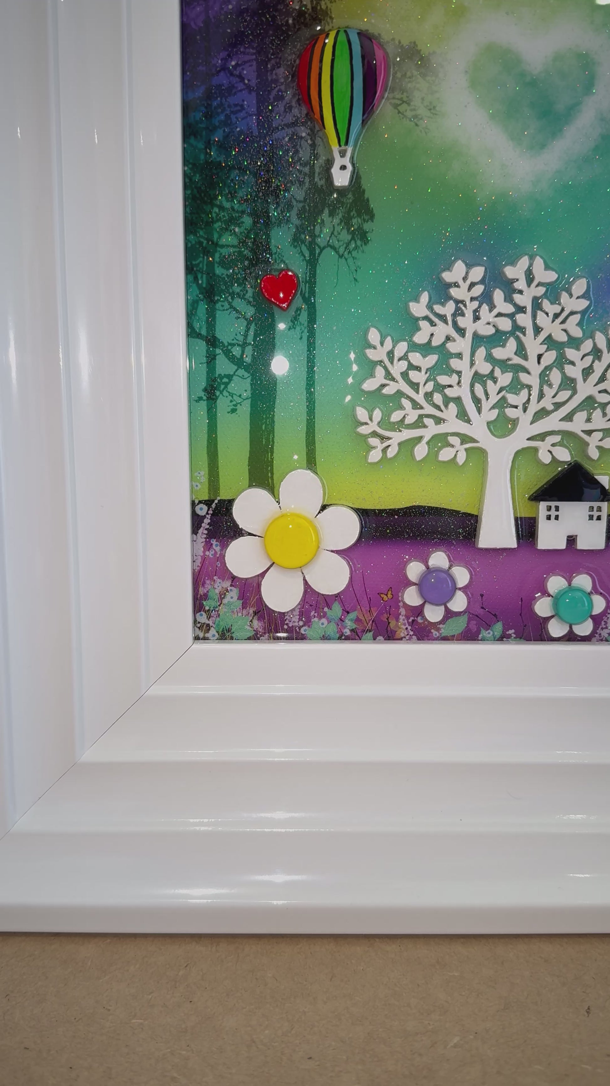 •Resin is applied as a medium using a brush just like the paint, the finish isn't that of a smooth tile, it will show some lumps and bumps and the diamond dust rocks on the painting, after all this is an original painting not a print.