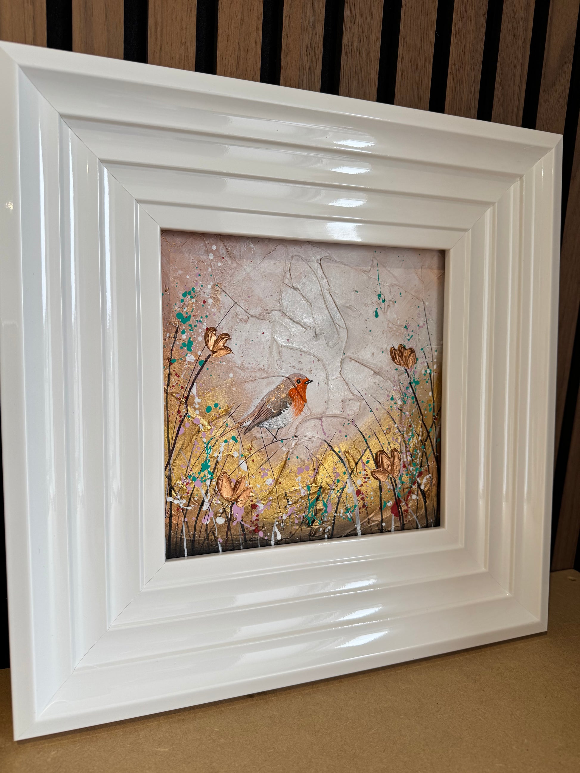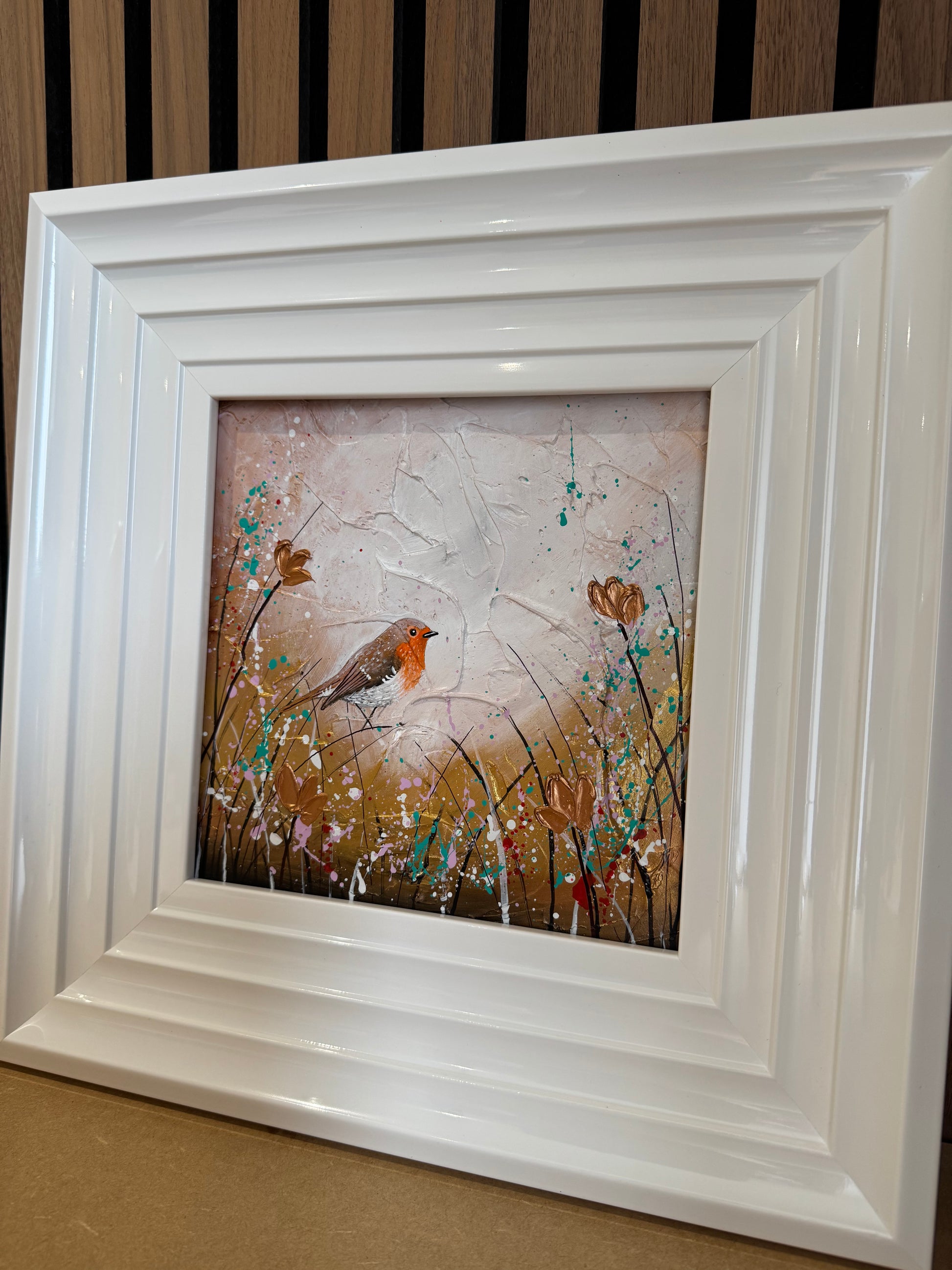 •Each original comes framed in my trademark white glossy frame which is free of charge. this frame has been in my studio and therefore will show some signs of use and a few marks which is why the item is reduced in price. Upon receiving the original you are more than welcome to re frame.