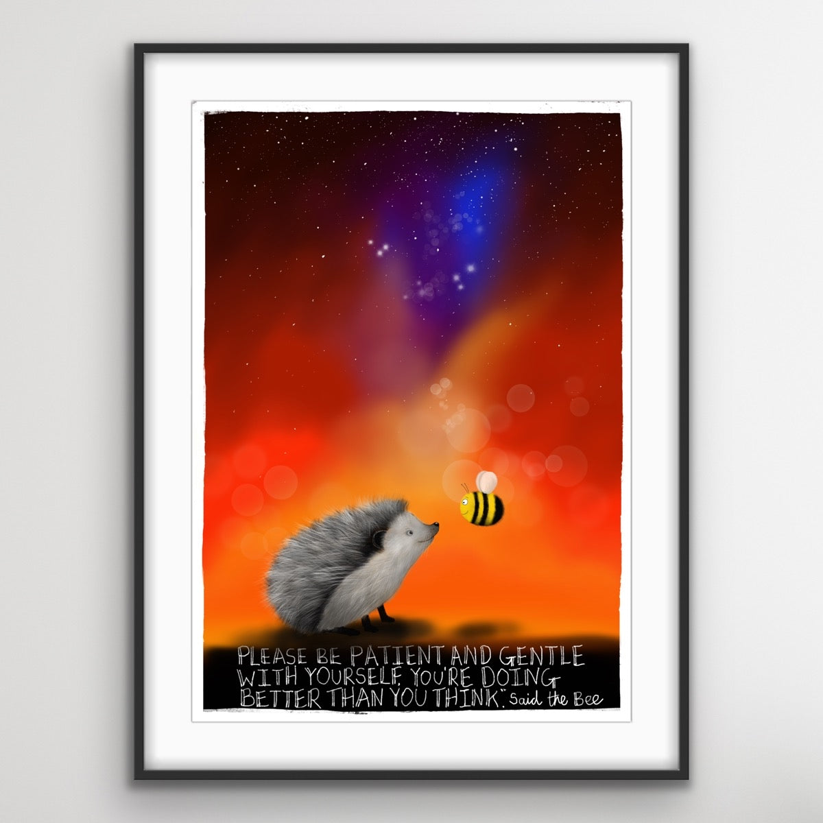 Designed to fit into an A5/A4 mount or straight into an A5/A4 frame although I would advise to always present artwork mounted and framed and always wait until you receive the artwork to frame
