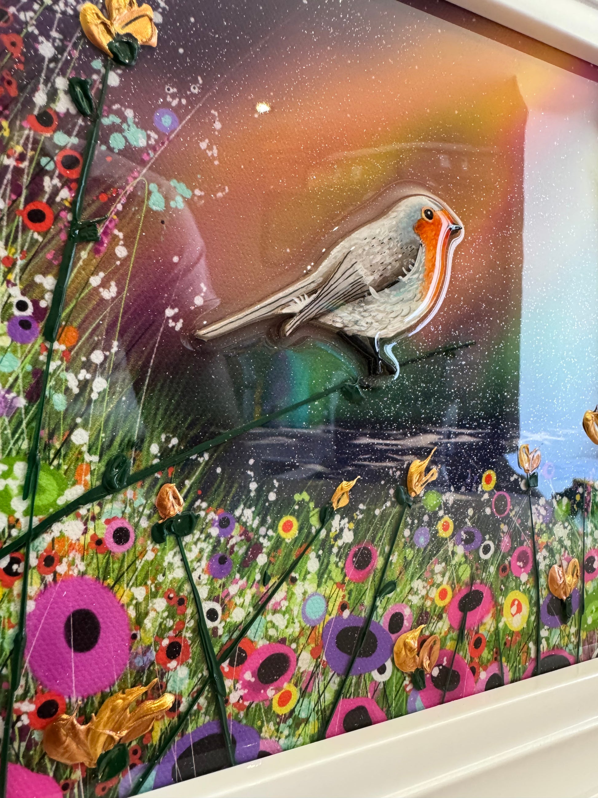 resin mixed media on board with 3D Robin embellishment with each being hand painted