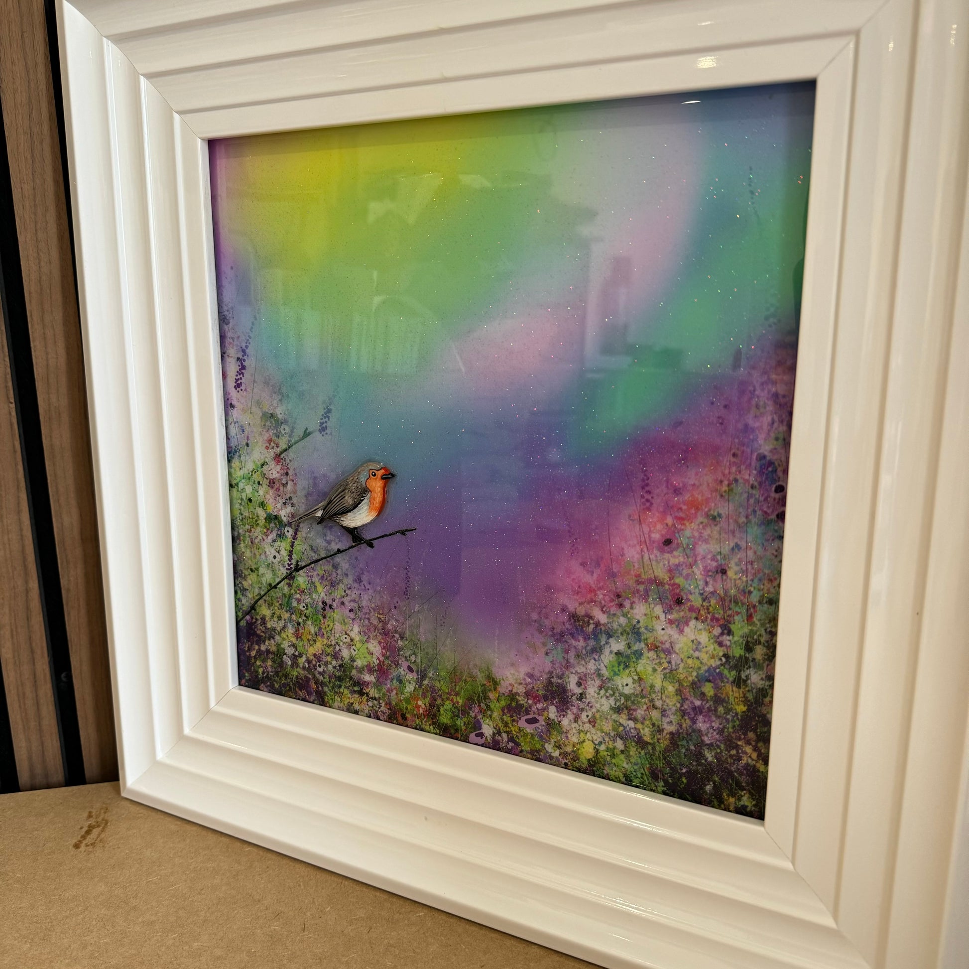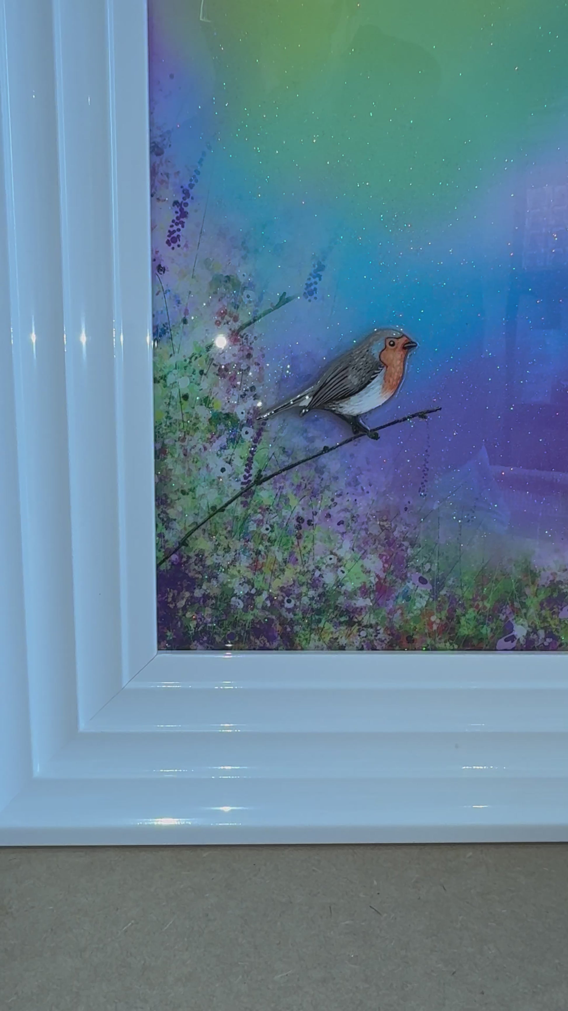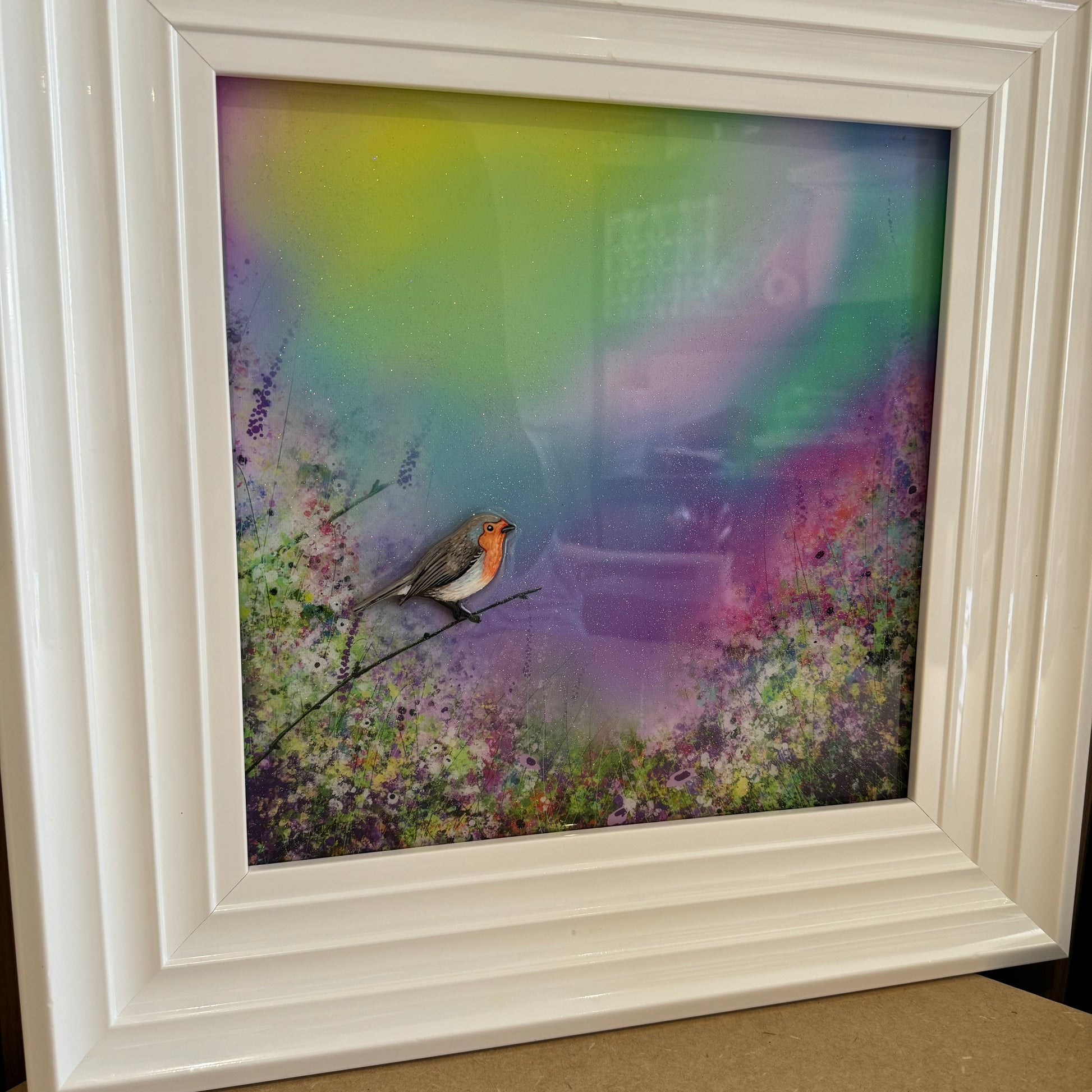 Each original comes in my trademark White glossy frame which is free of charge. You are more than welcome to reframe in something else once received.