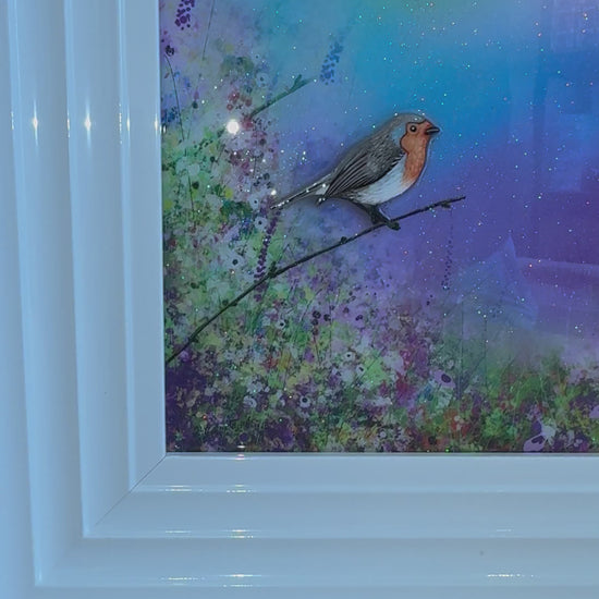 resin mixed media on board with 3D hand painted and cut Robin element.