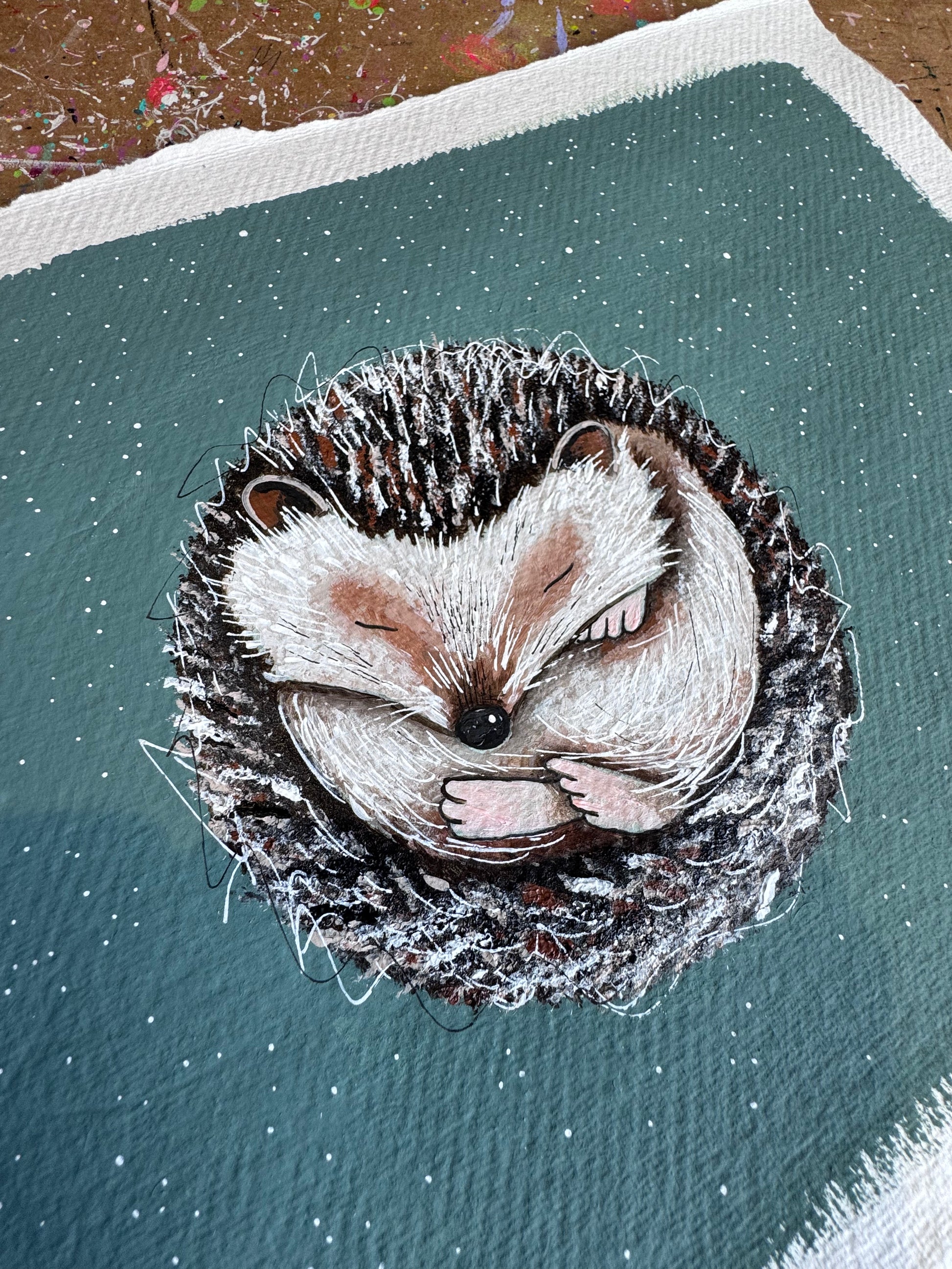 Original painting on Handmade 100% Recycled cotton rag paper.