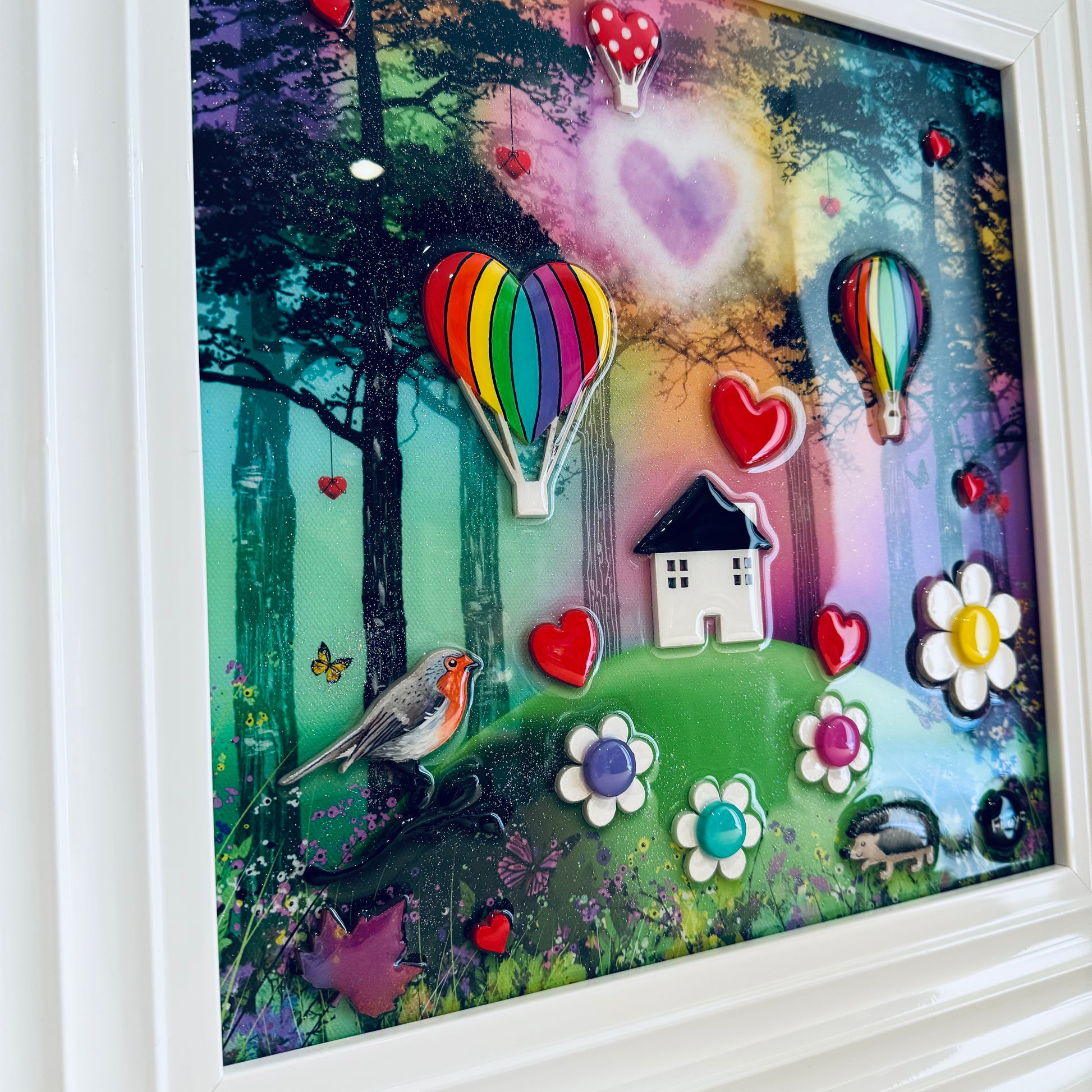 •Resin is applied as a medium using a brush just like the paint, the finish isn't that of a smooth tile, it will show some lumps and bumps and the diamond dust rocks on the painting, after all this is an original painting not a print.