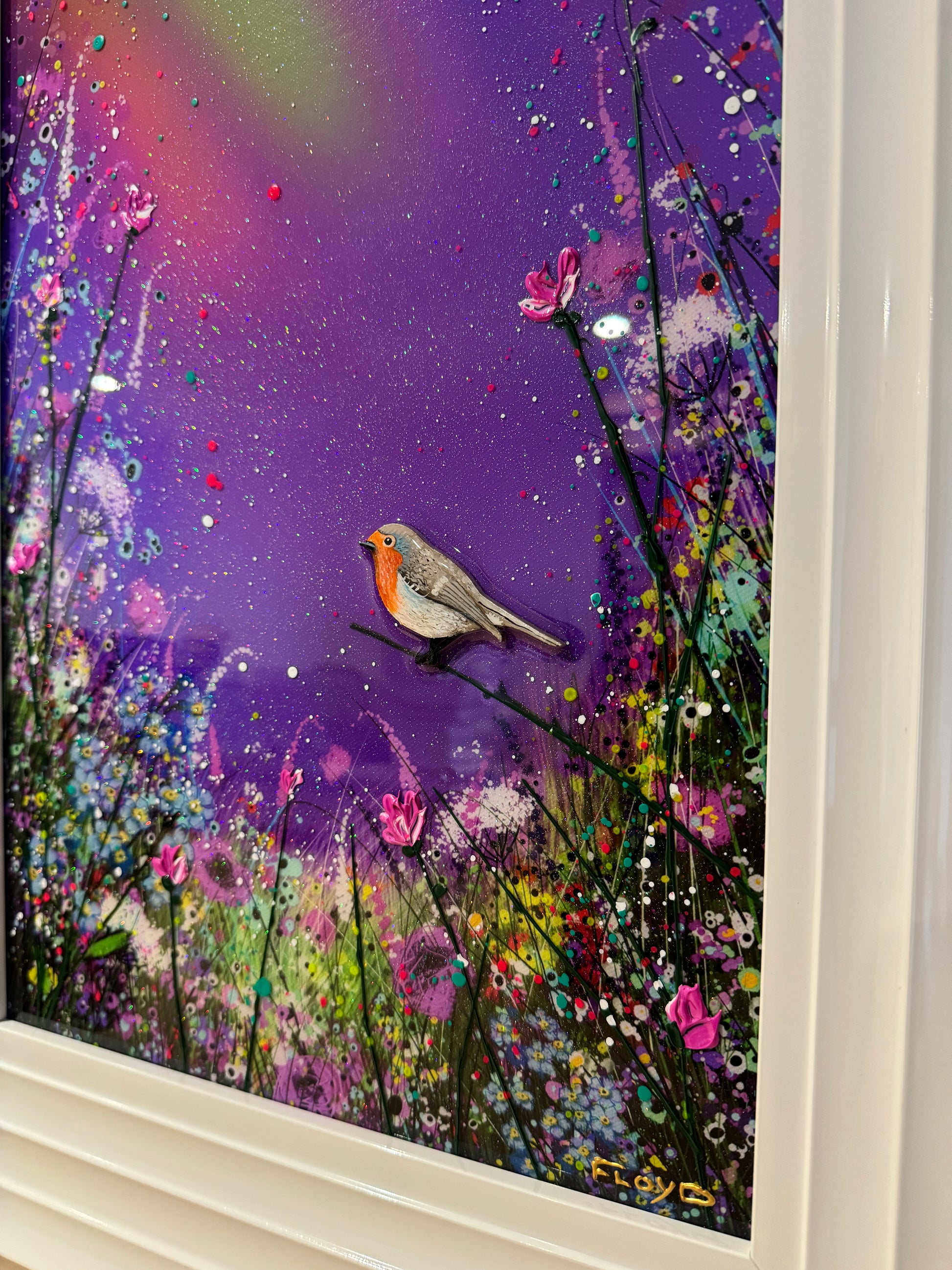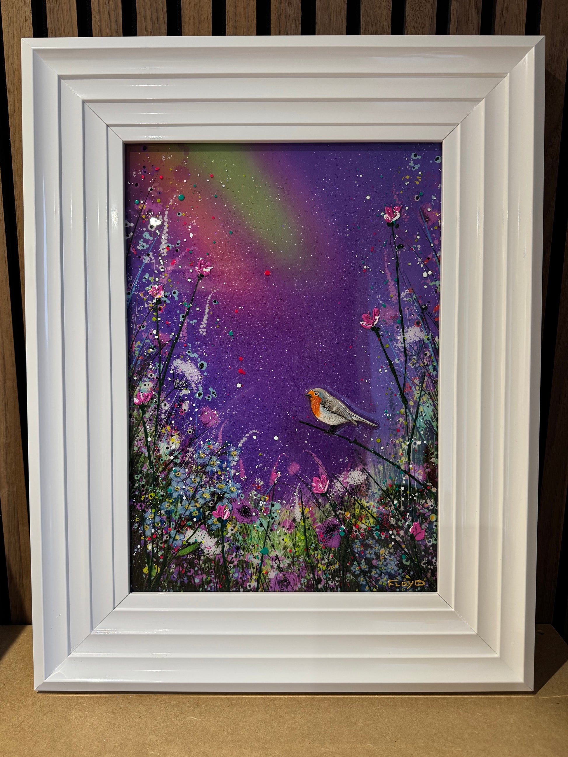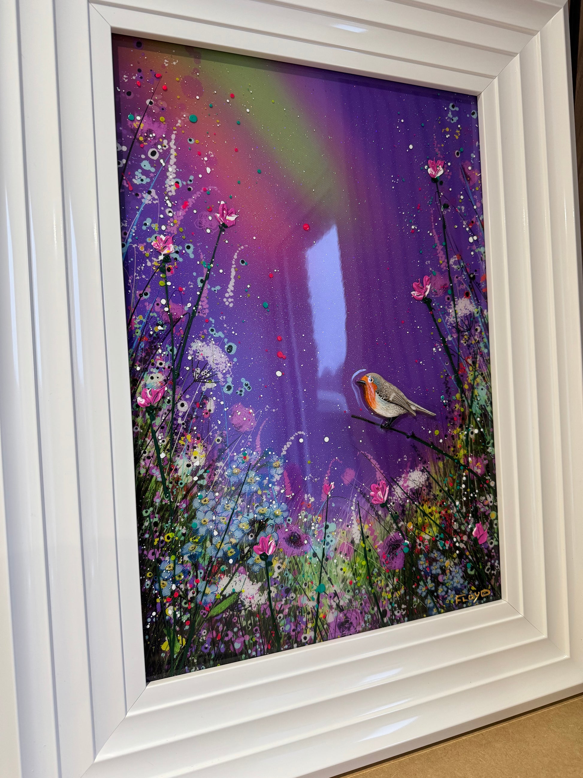 Each original comes in my trademark White glossy frame which is free of charge. You are more than welcome to reframe in something else once received. Damaged frames are non replaceable as they are FREE.