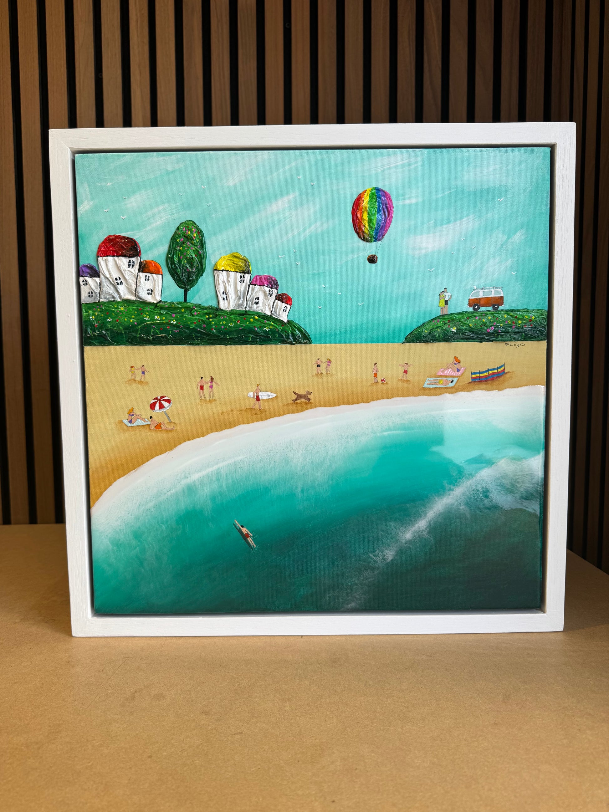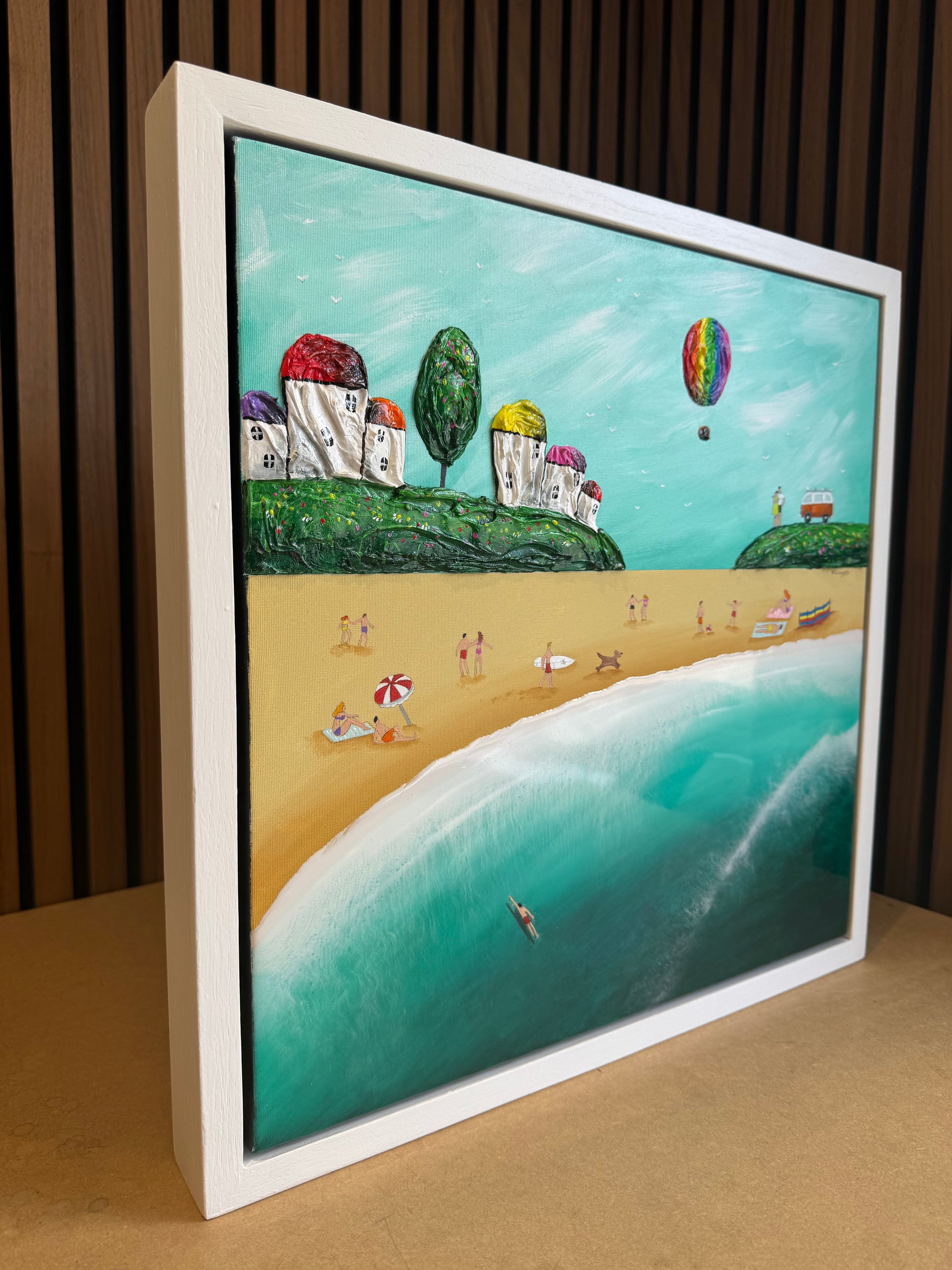 As a 3D artist with over a decade of experience working with resin, I have encountered numerous resin wave creations. However, I did not want to merely represent my surroundings and cherished childhood memories of beach holidays through waves alone. I recognized that the sea had to be a significant aspect of my work, but I also sought to incorporate beach life and the charm of quirky coastal towns. The rugged hills, unique cottages, lighthouses, and even camper vans are all hand-sculpted directly onto the canvas, rendering each painting completely unique. They even cast their own shadows, enhancing their lifelike quality in a manner that sets them apart from others.