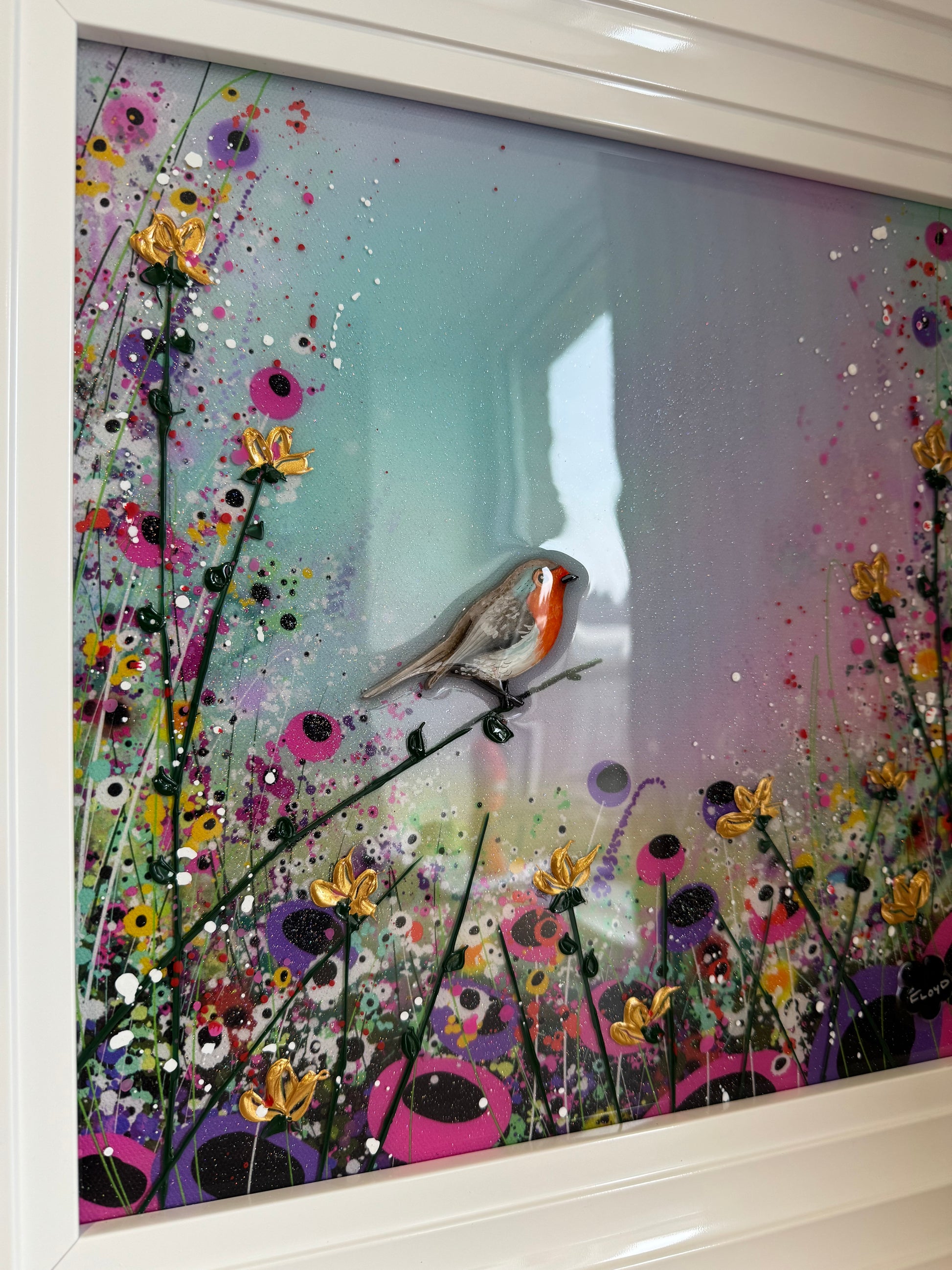Each original comes in my trademark White glossy frame which is free of charge. You are more than welcome to reframe in something else once received. Damaged frames are non replaceable as they are FREE.