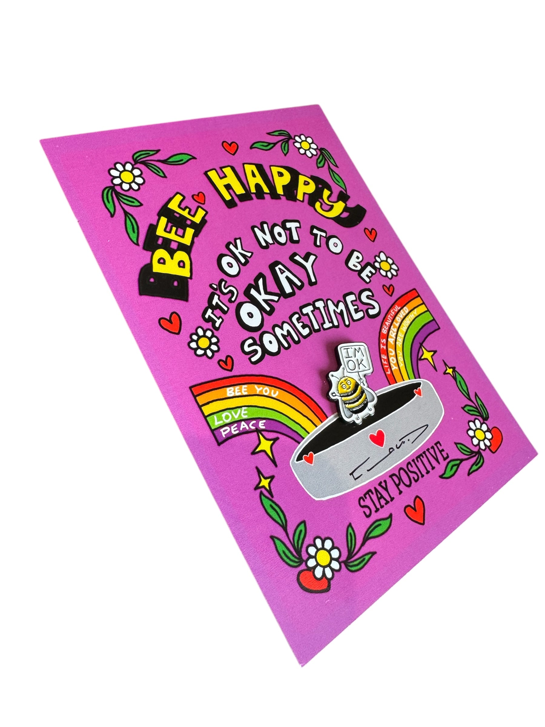 Join us in promoting mental health awareness and solidarity. Wear the "I’m Ok" Bee enamel pin proudly, and let it buzz its way into the hearts of those around you, spreading kindness and understanding wherever it goes. Together, we can create a world where mental health is openly discussed, and no one has to feel alone in their journey.