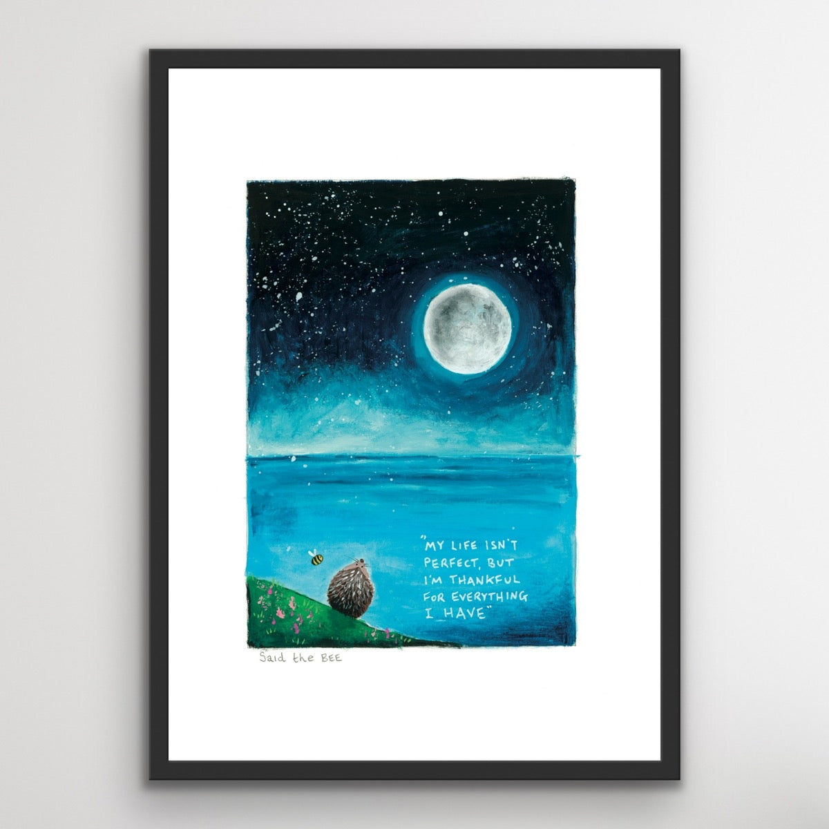 Designed to fit into an A5/A4 mount or straight into an A5/A4 frame although I would advise to always present artwork mounted and framed and always wait until you receive the artwork to frame