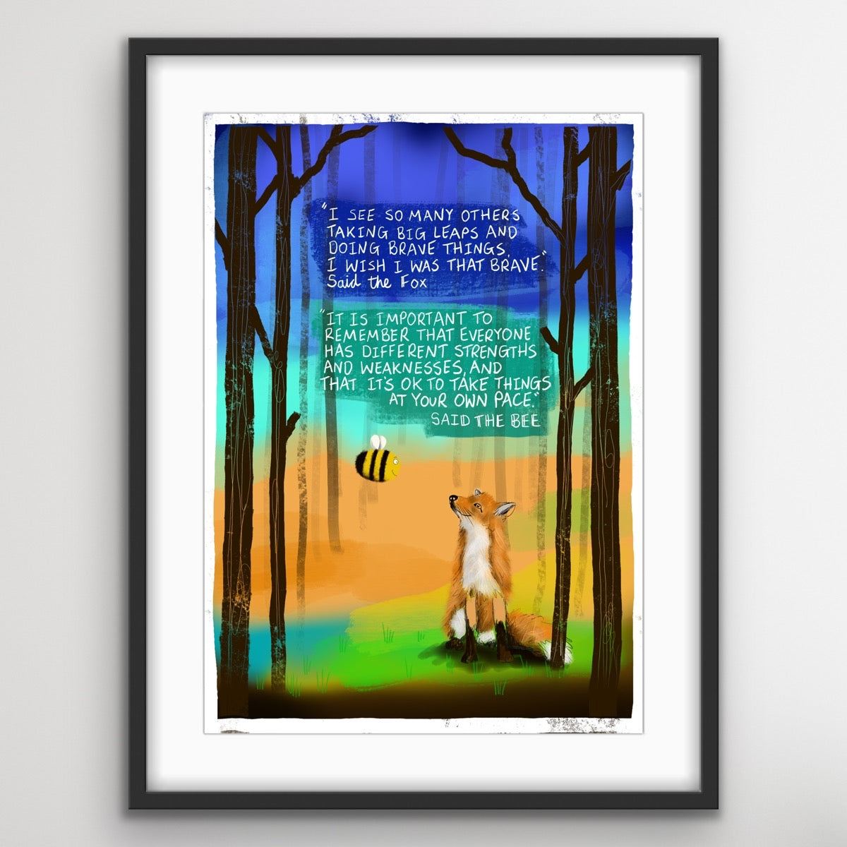 Designed to fit into an A5/A4 mount or straight into an A5/A4 frame although I would advise to always present artwork mounted and framed and always wait until you receive the artwork to frame