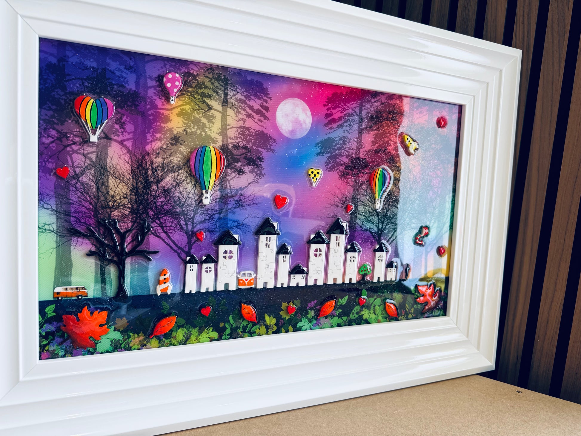 Each original comes in my trademark White glossy frame which is free of charge. You are more than welcome to reframe in something else once received. Damaged frames are non replaceable as they are FREE.