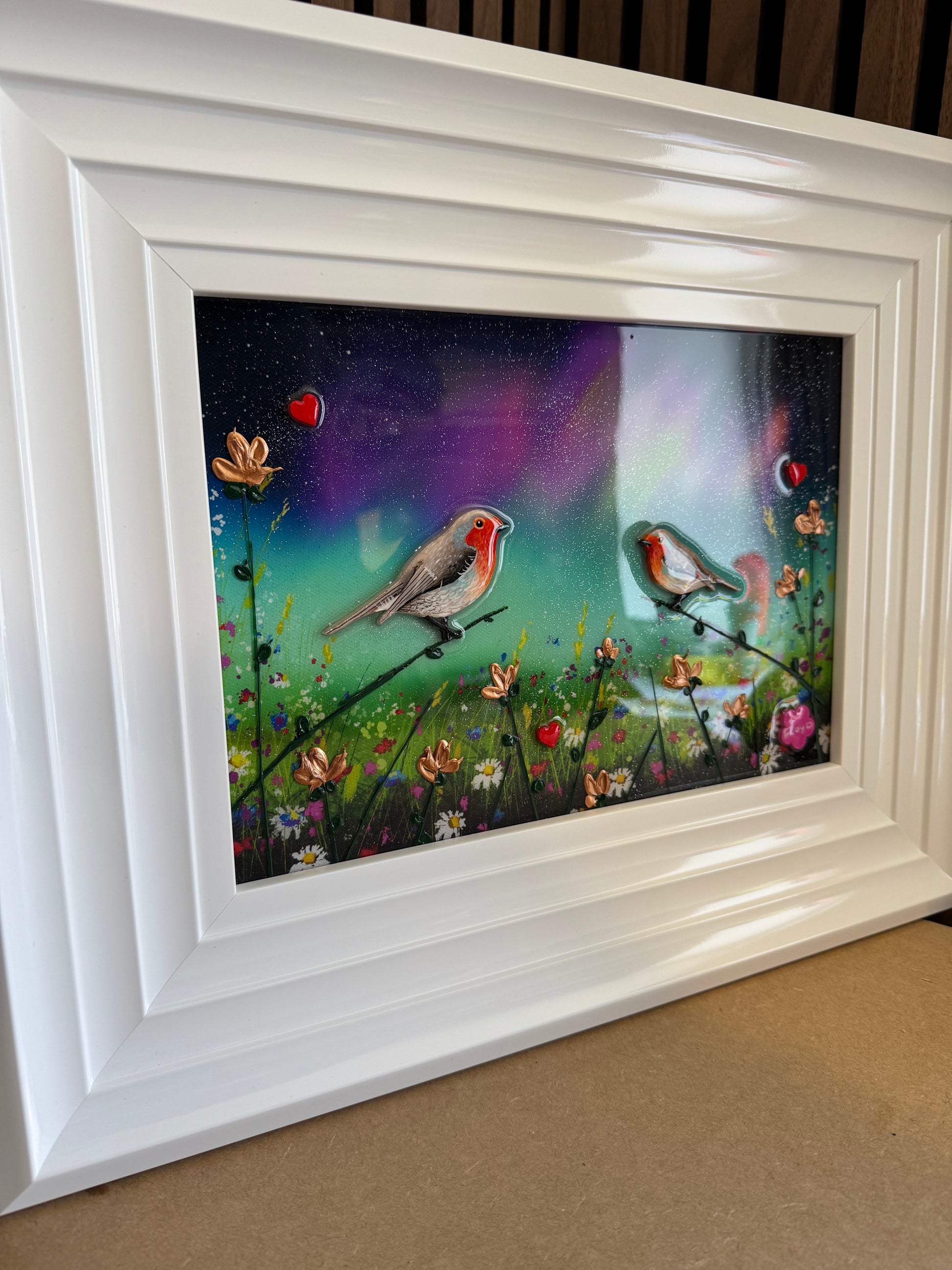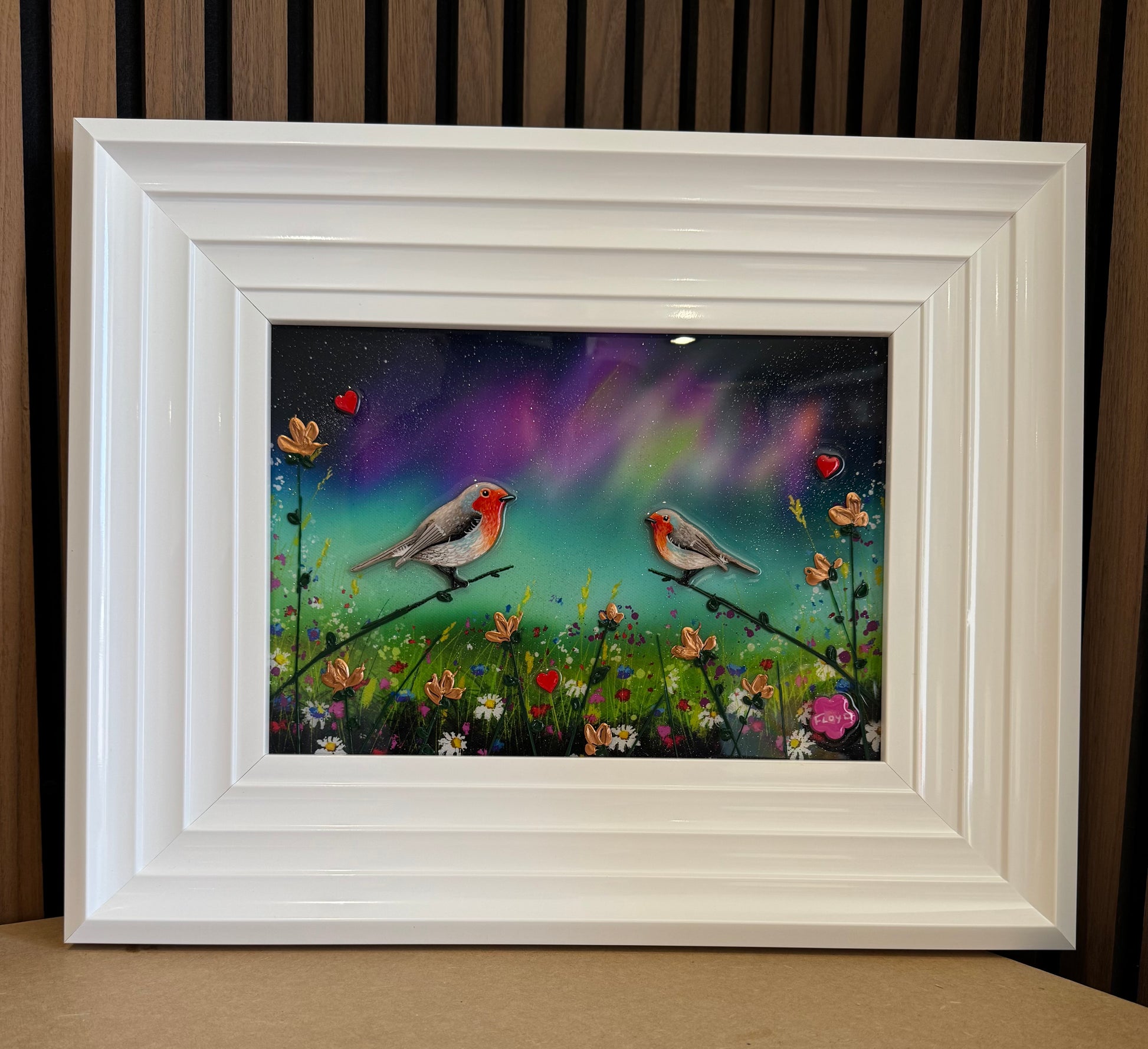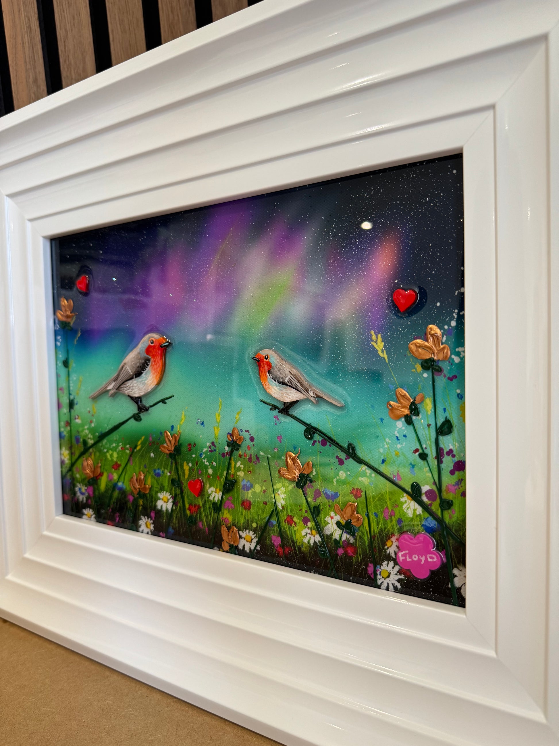 Each original comes in my trademark White glossy frame which is free of charge. You are more than welcome to reframe in something else once received. Damaged frames are non replaceable as they are FREE.