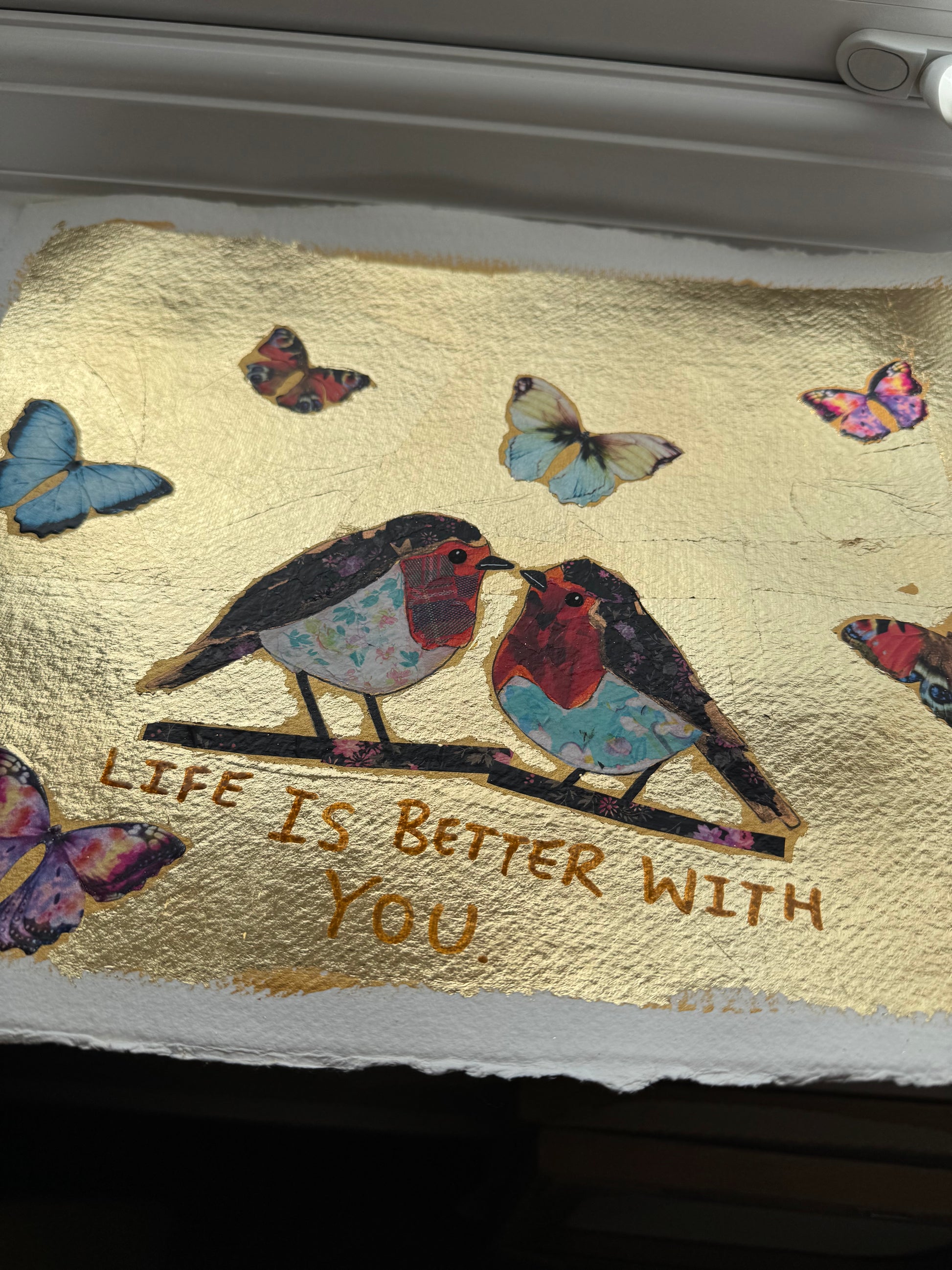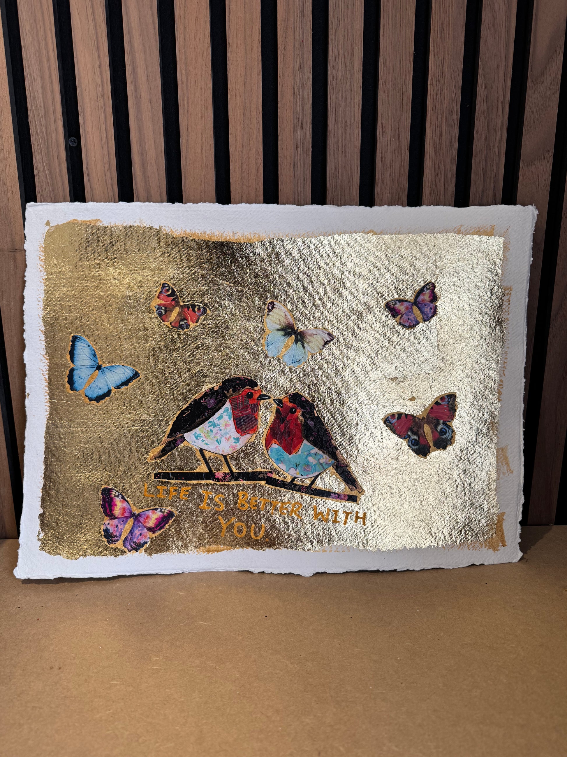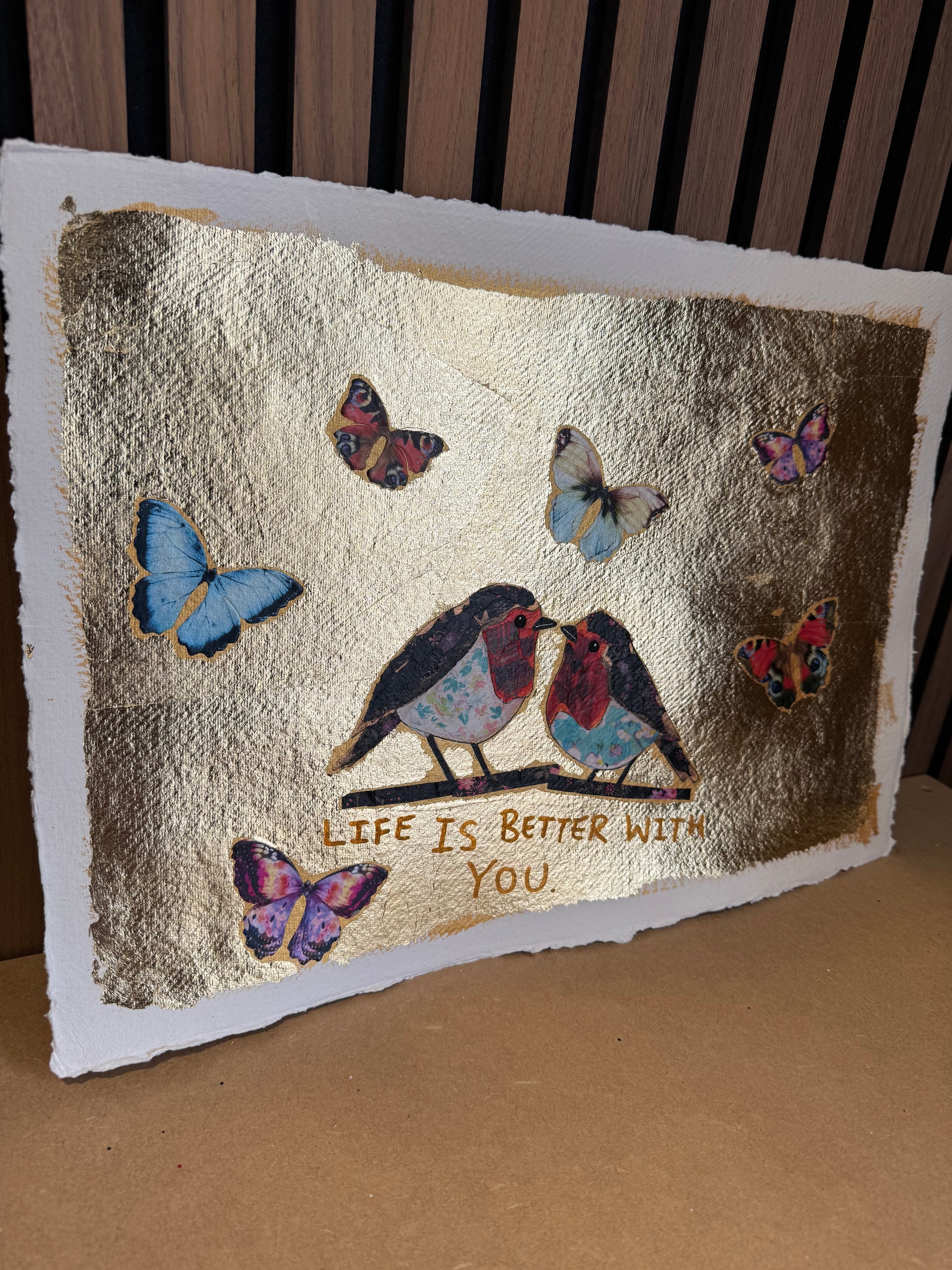 Original painting on Handmade 100% Recycled cotton rag paper.
