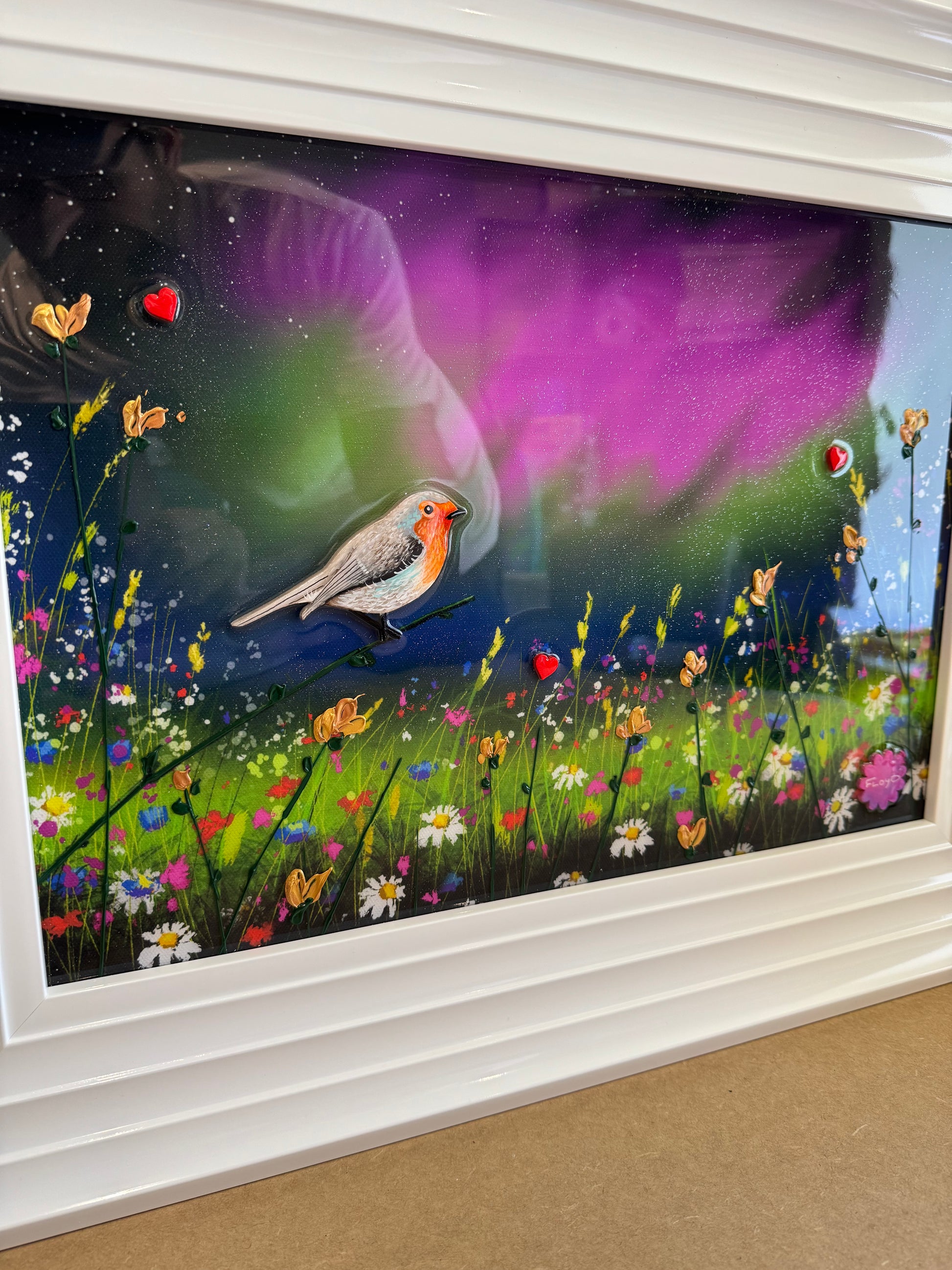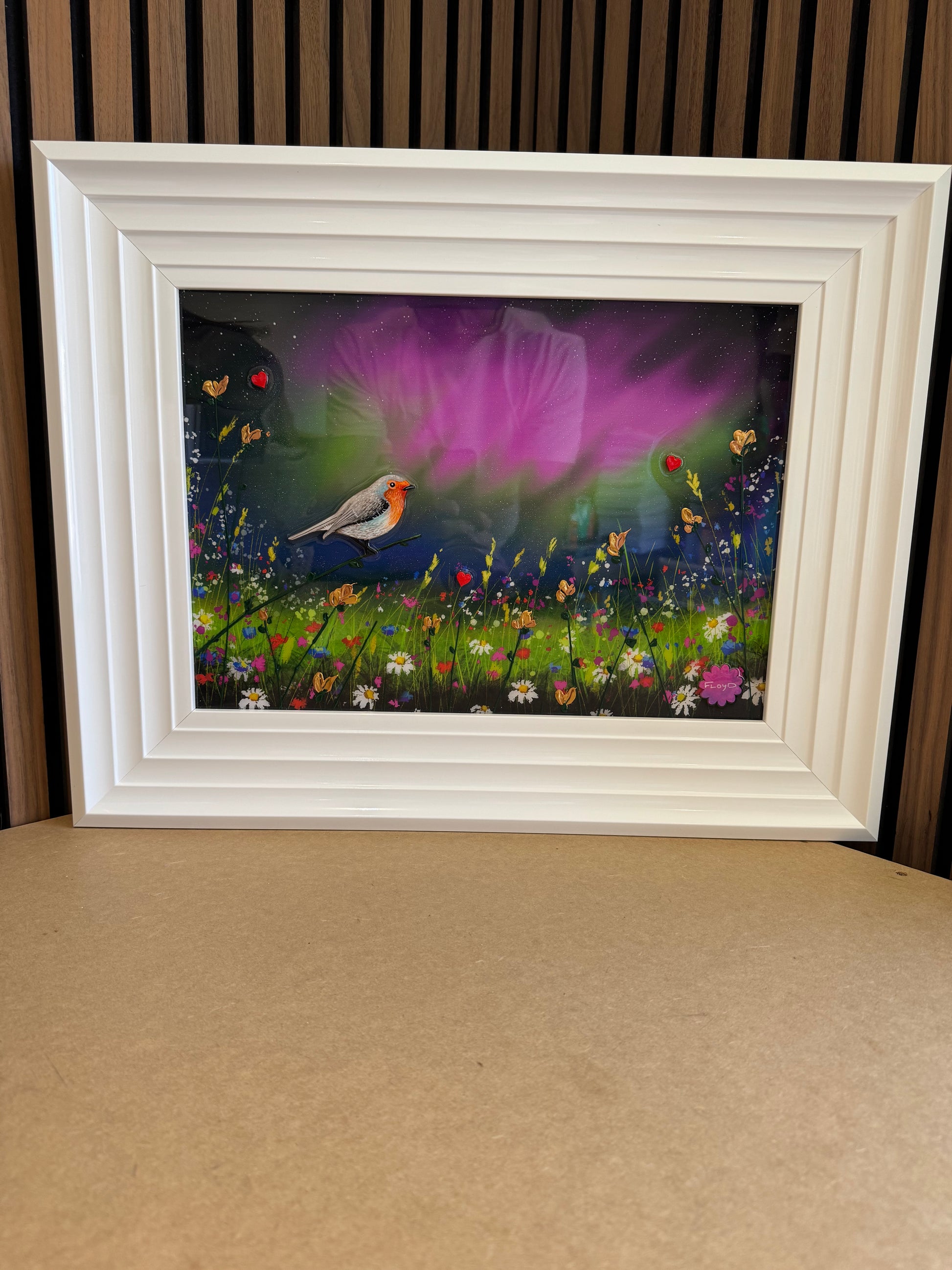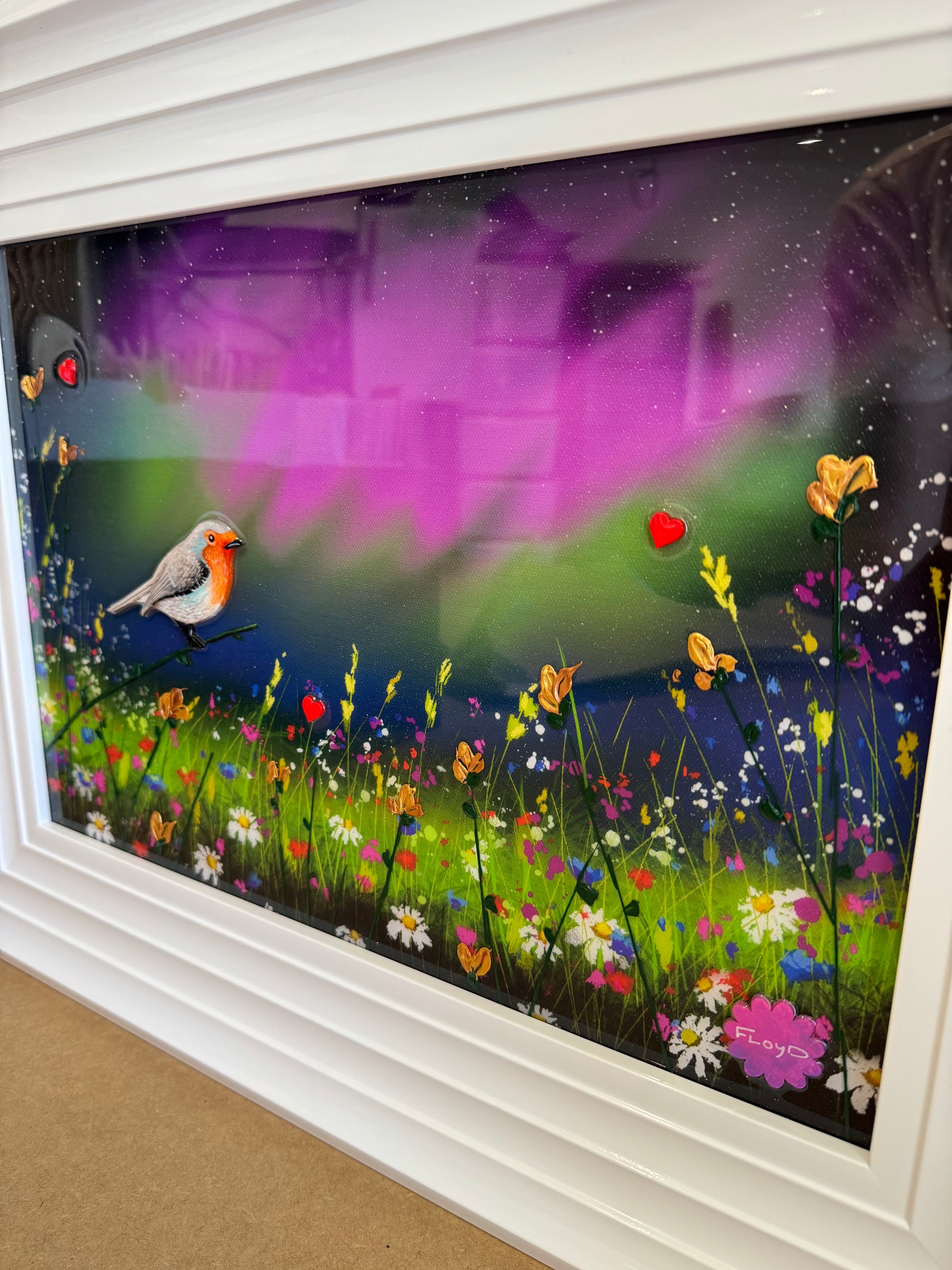 Each original comes in my trademark White glossy frame which is free of charge. You are more than welcome to reframe in something else once received. Damaged frames are non replaceable as they are FREE.