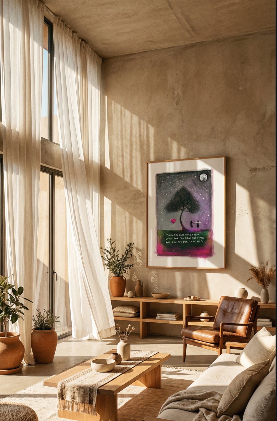 Designed to fit into an A5/A4 mount or straight into an A5/A4 frame although I would advise to always present artwork mounted and framed and always wait until you receive the artwork to frame