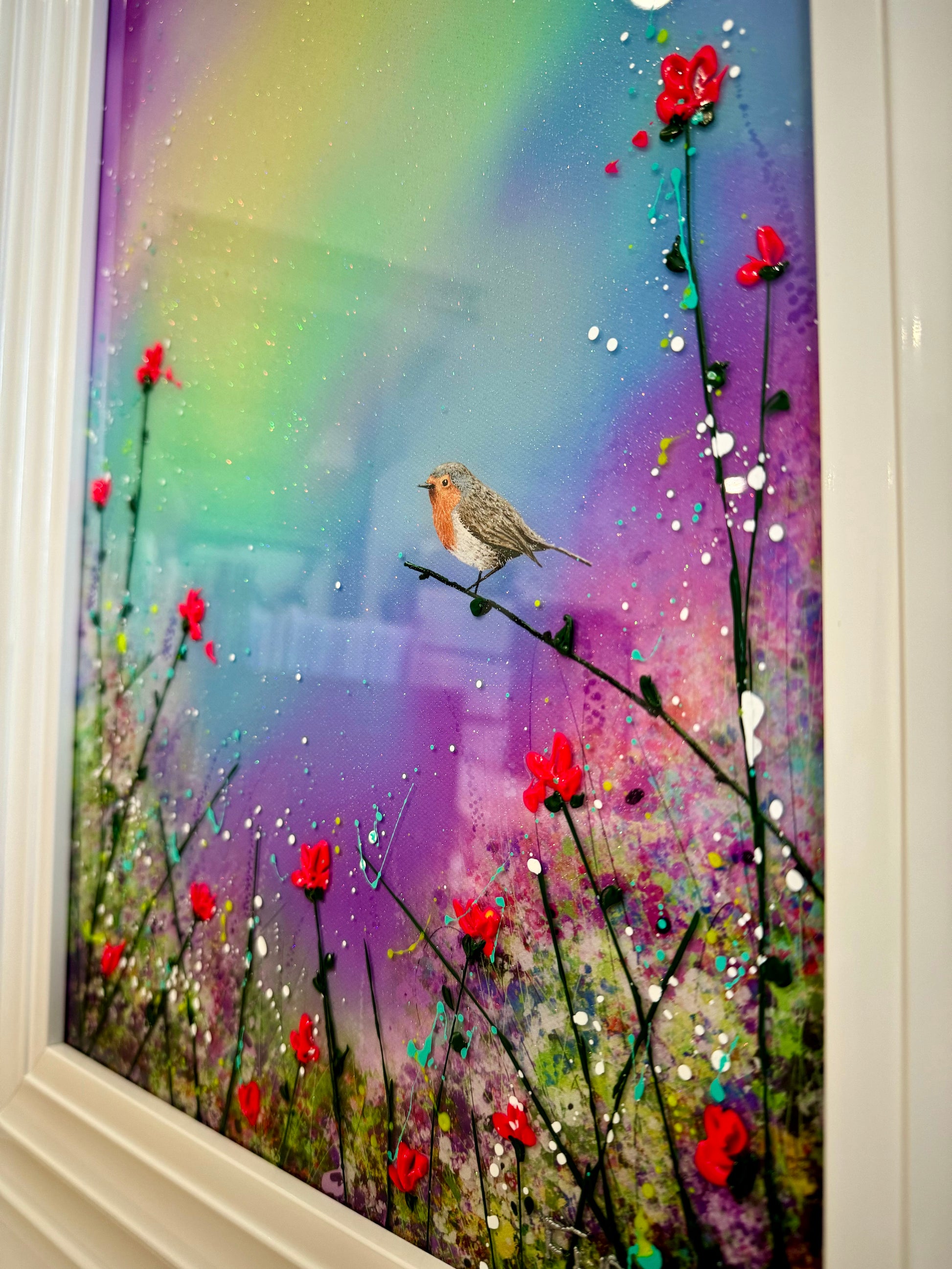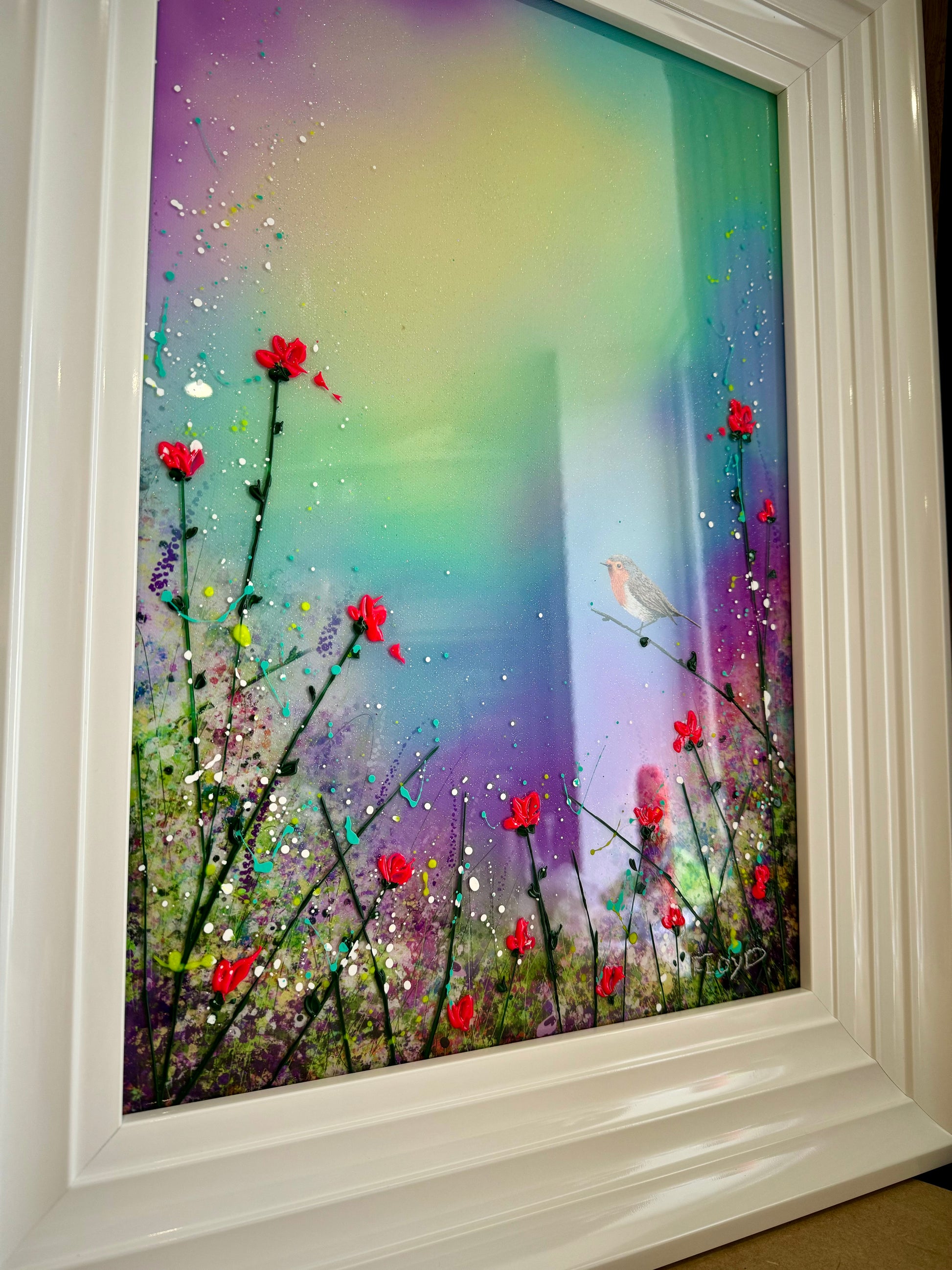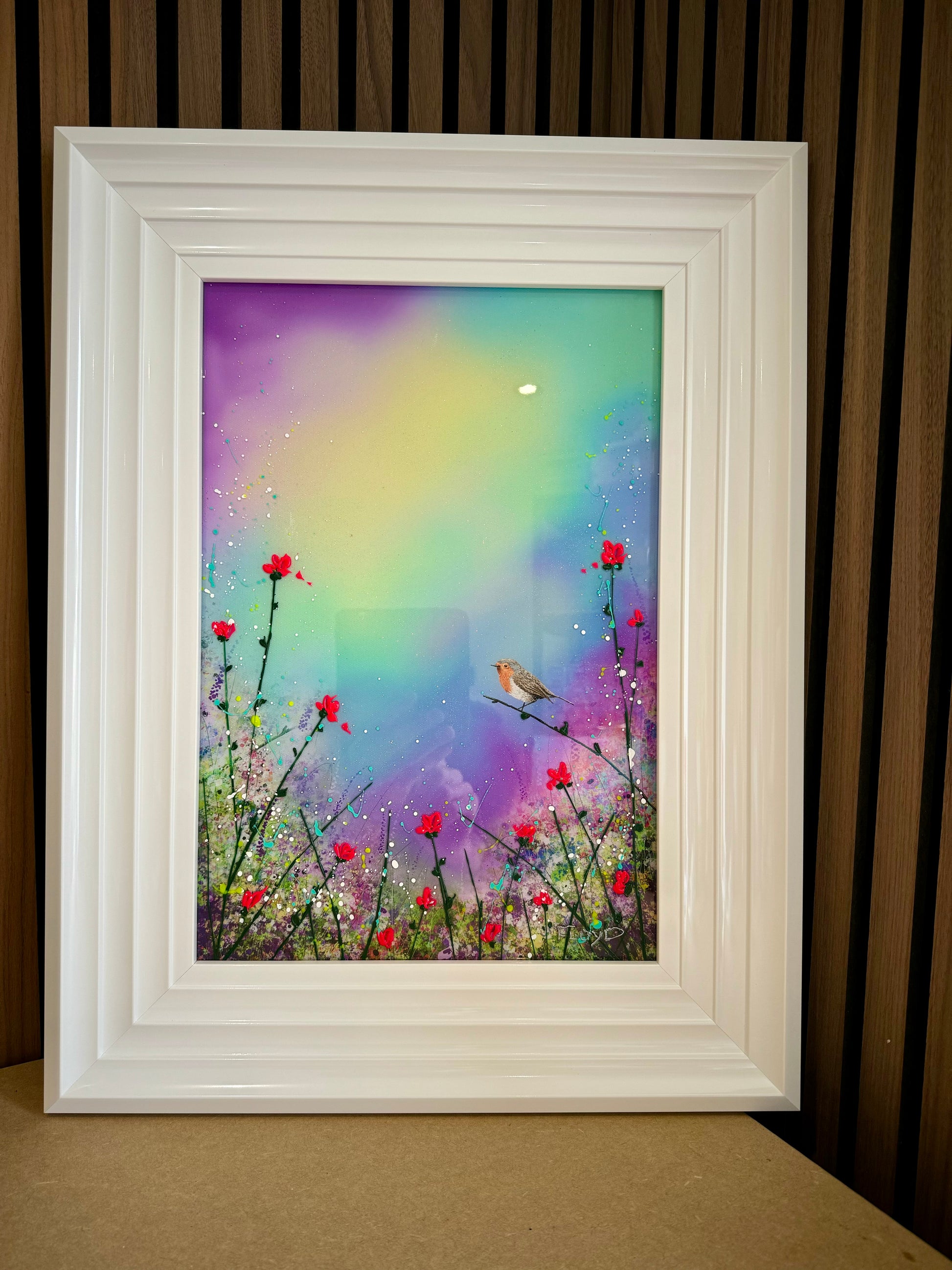 Each original comes in my trademark White glossy frame which is free of charge. You are more than welcome to reframe in something else once received. Damaged frames are non replaceable as they are FREE.