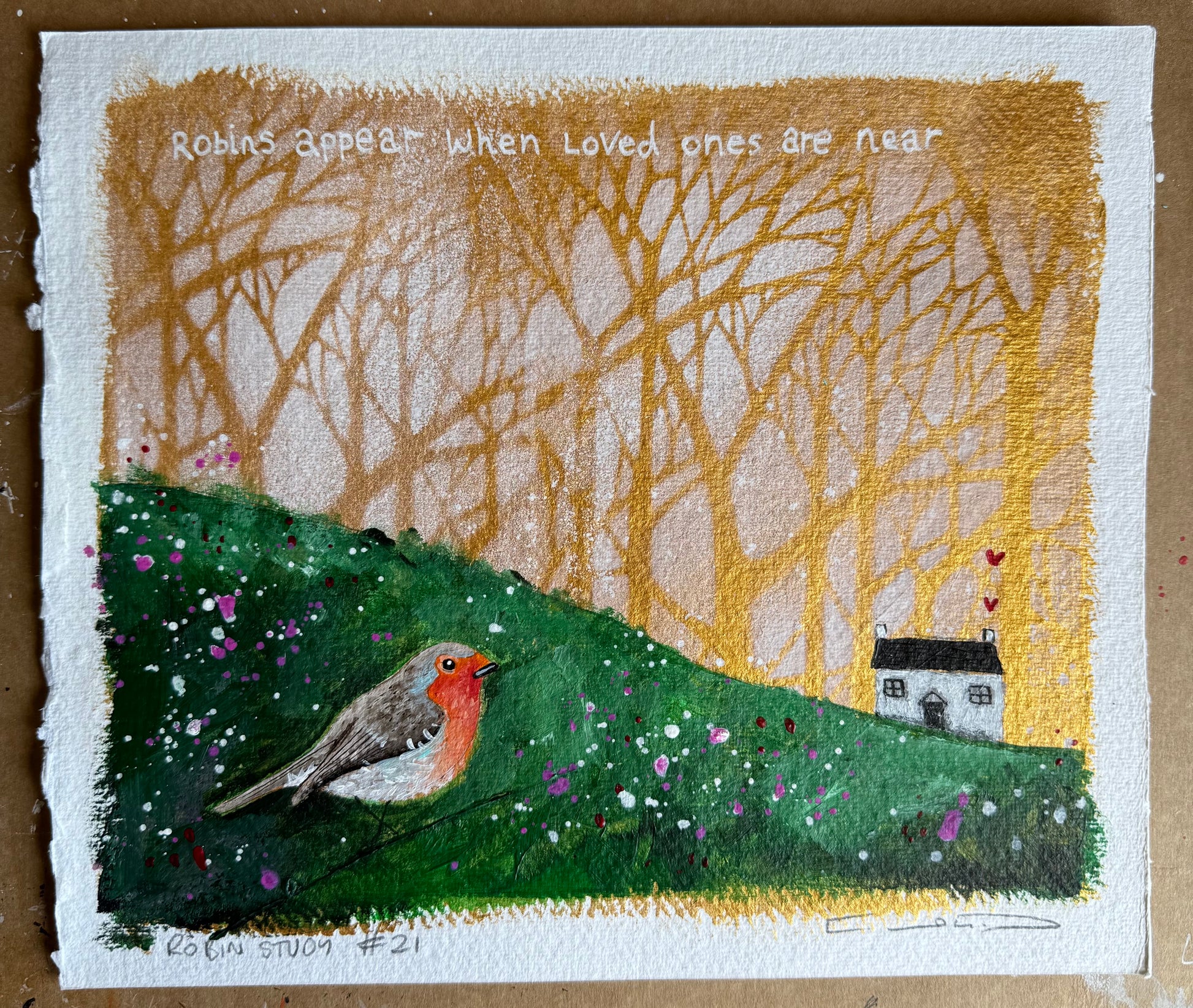 This is from a collection of painting sketches I create prior to a new painting, I test different backgrounds out and colour combinations before deciding which works best. Each one is completely unique and a one off.