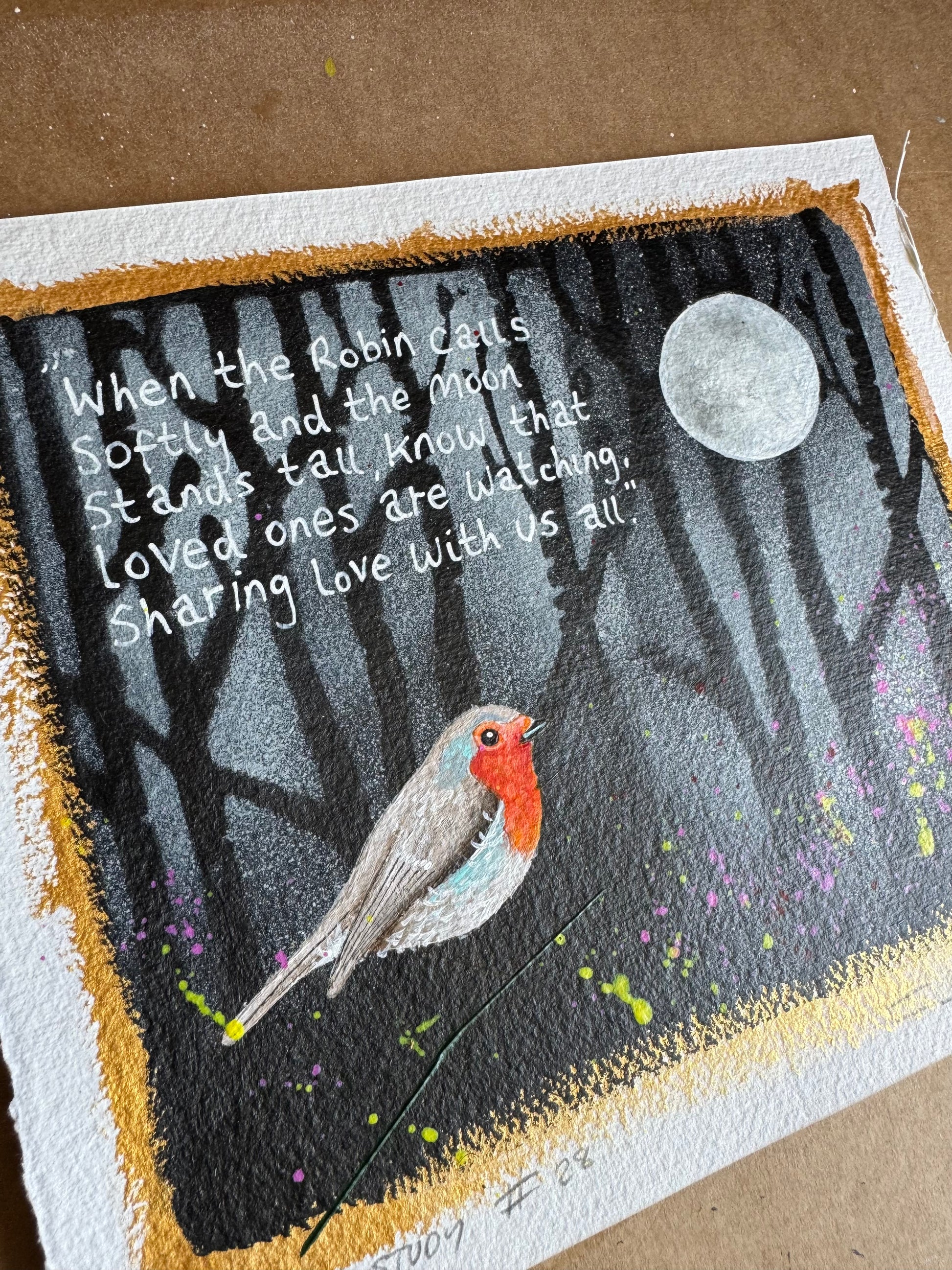 Original painting on Handmade 100% Recycled cotton rag paper.