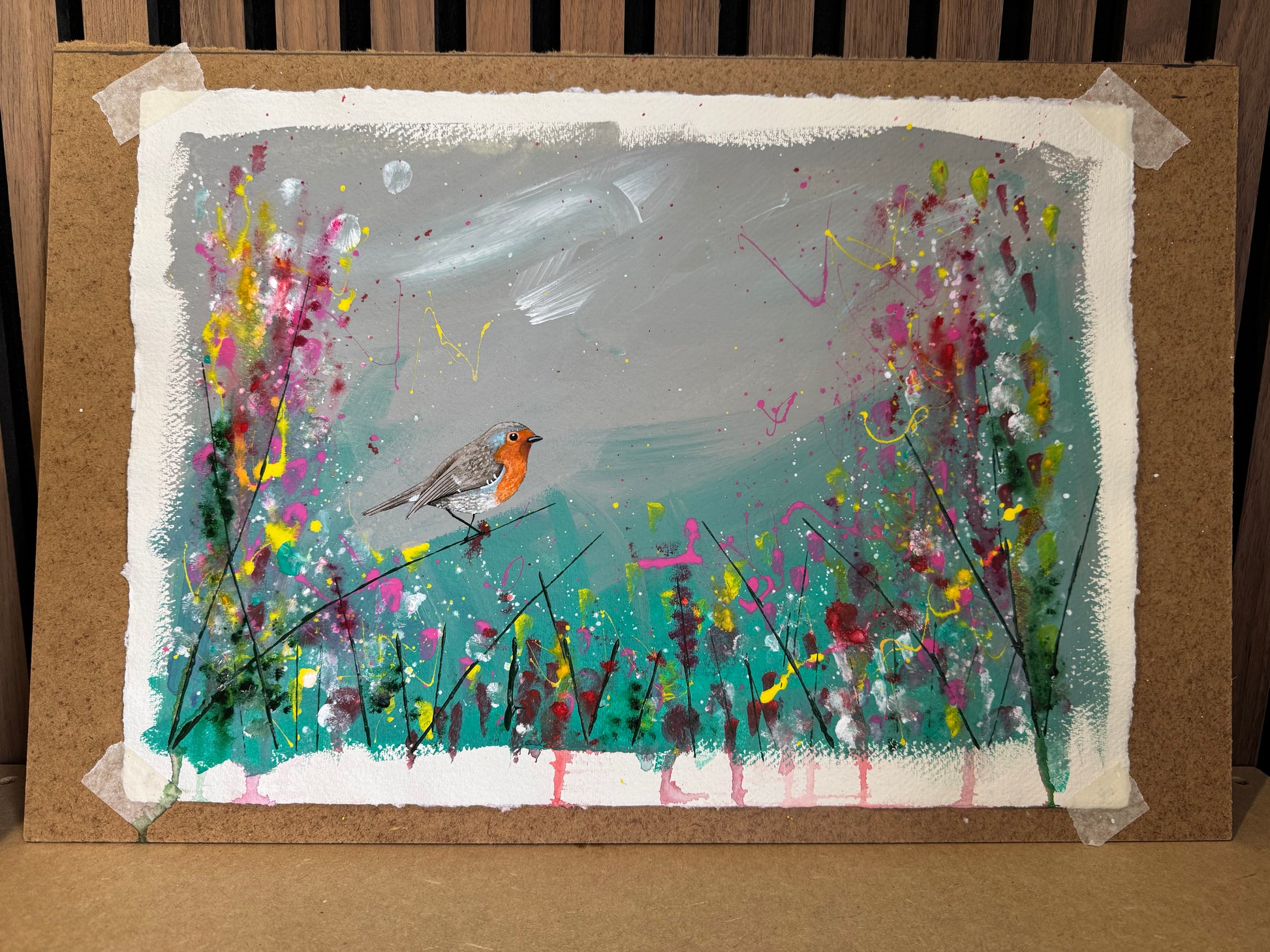 This is from a collection of painting sketches I create prior to a new painting, I test different backgrounds out and colour combinations before deciding which works best. Each one is completely unique and a one off.