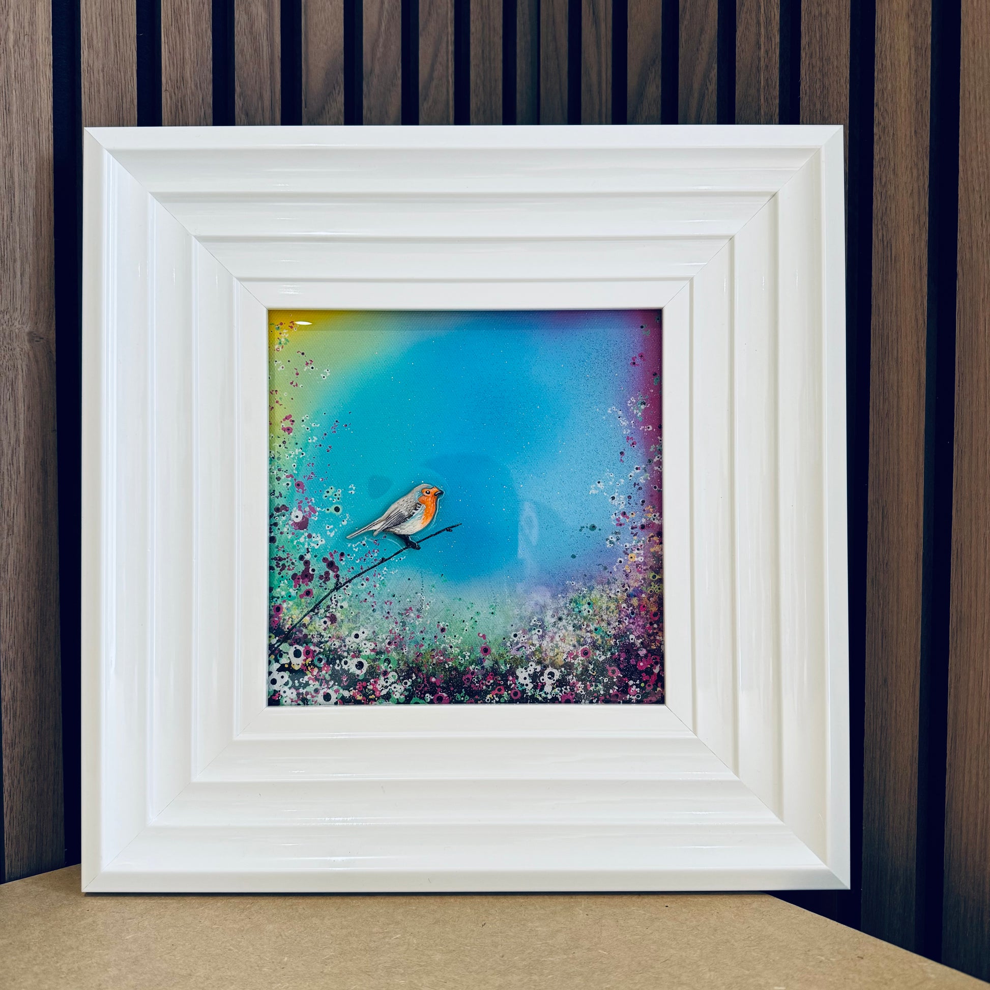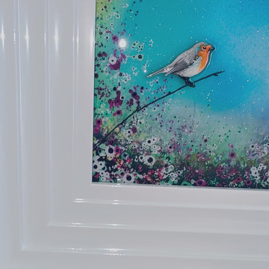 resin mixed media on board with 3D hand painted and cut Robin element.