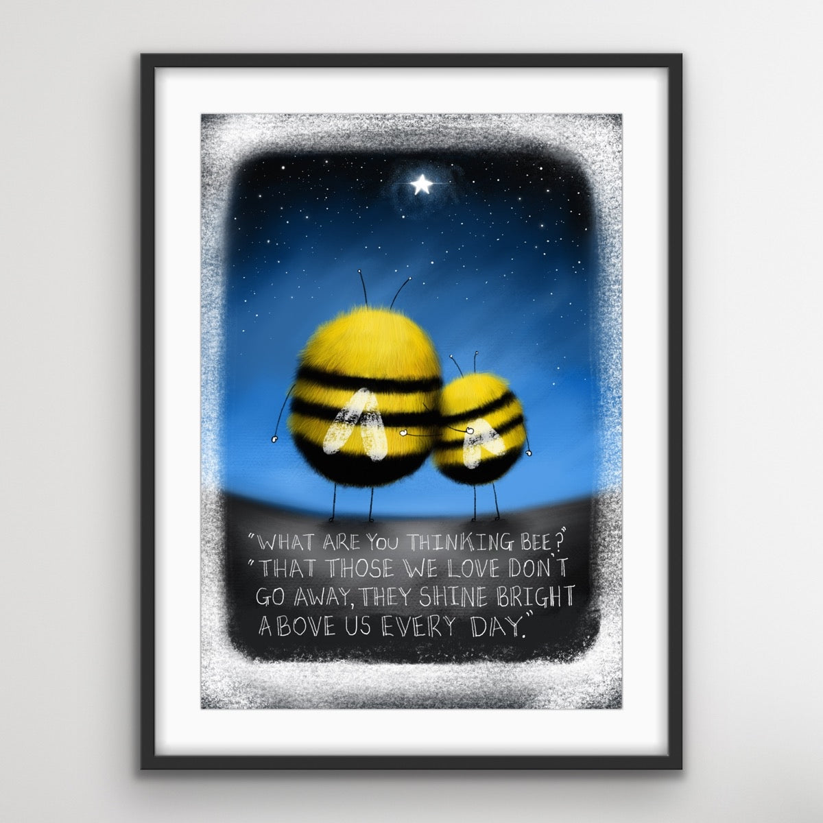 Designed to fit into an A5/A4 mount or straight into an A5/A4 frame although I would advise to always present artwork mounted and framed and always wait until you receive the artwork to frame
