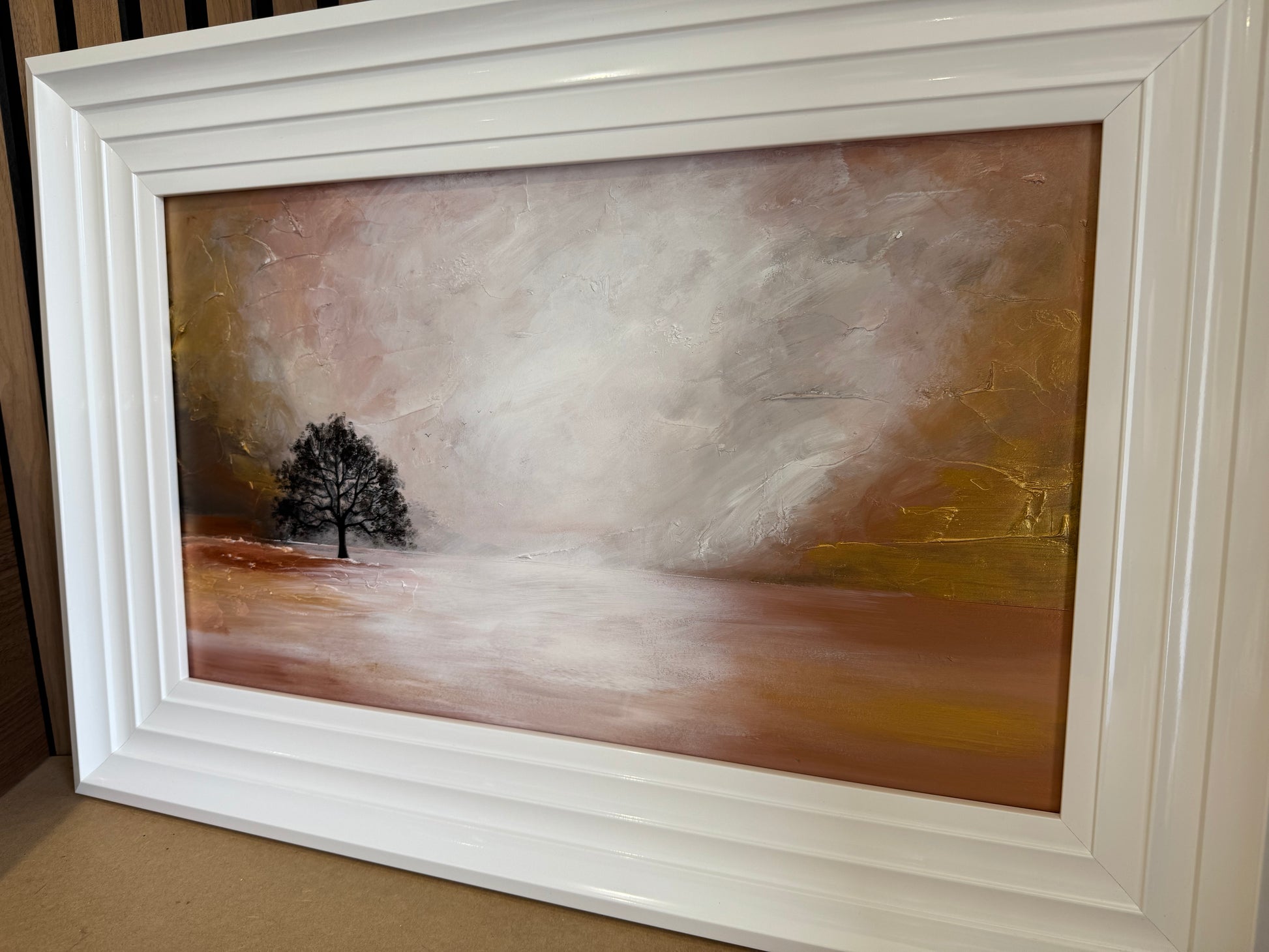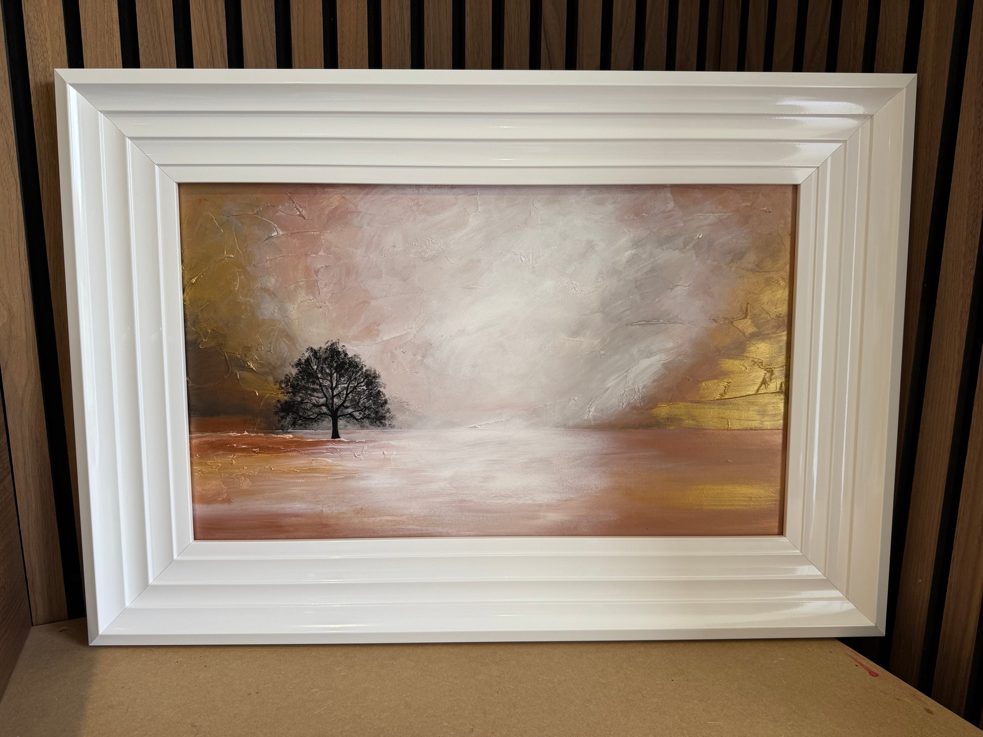 Each original comes in my trademark White glossy frame which is free of charge. This particular frame has been sat in my studio over a period of time and has some marks and dinks on it which aren’t too bad and once up on the wall would be ok. But You are more than welcome to reframe in something else once received. Damaged frames are non replaceable as they are FREE.