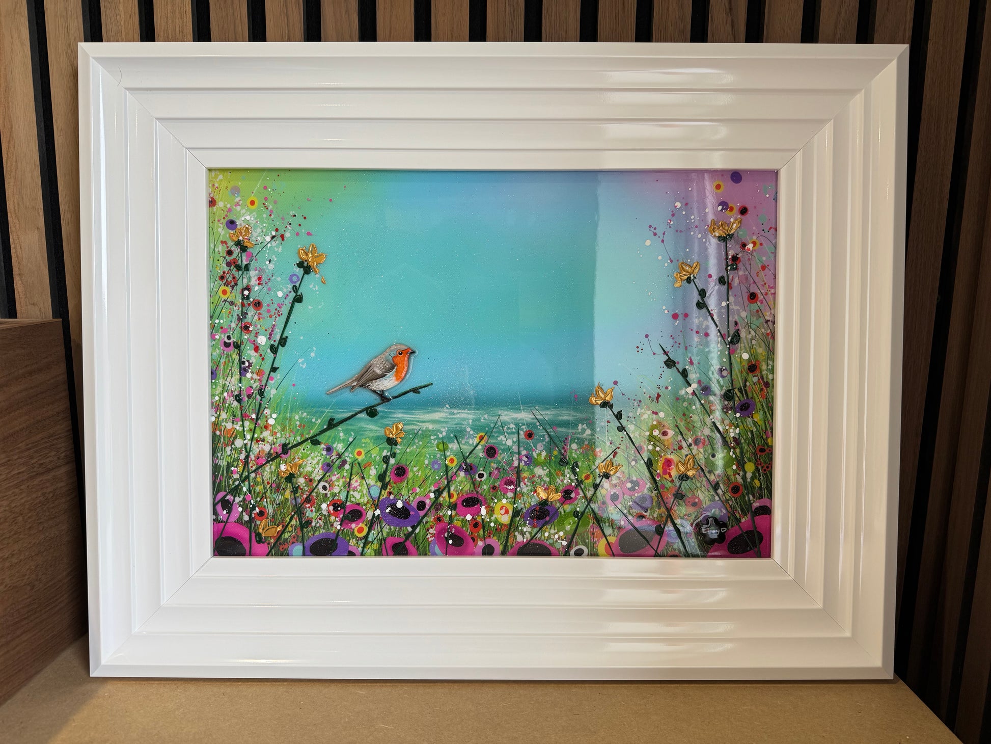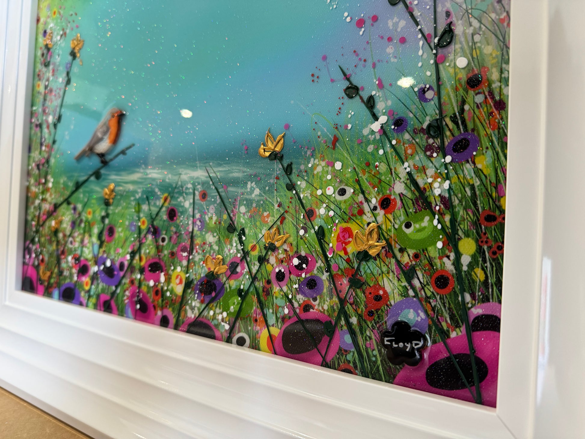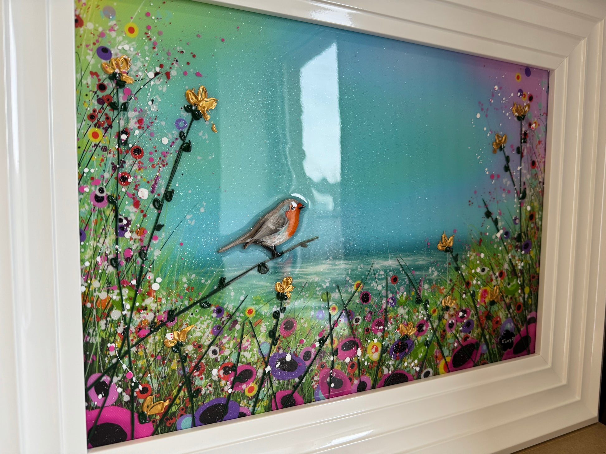 Each original comes in my trademark White glossy frame which is free of charge. You are more than welcome to reframe in something else once received. Damaged frames are non replaceable as they are FREE.