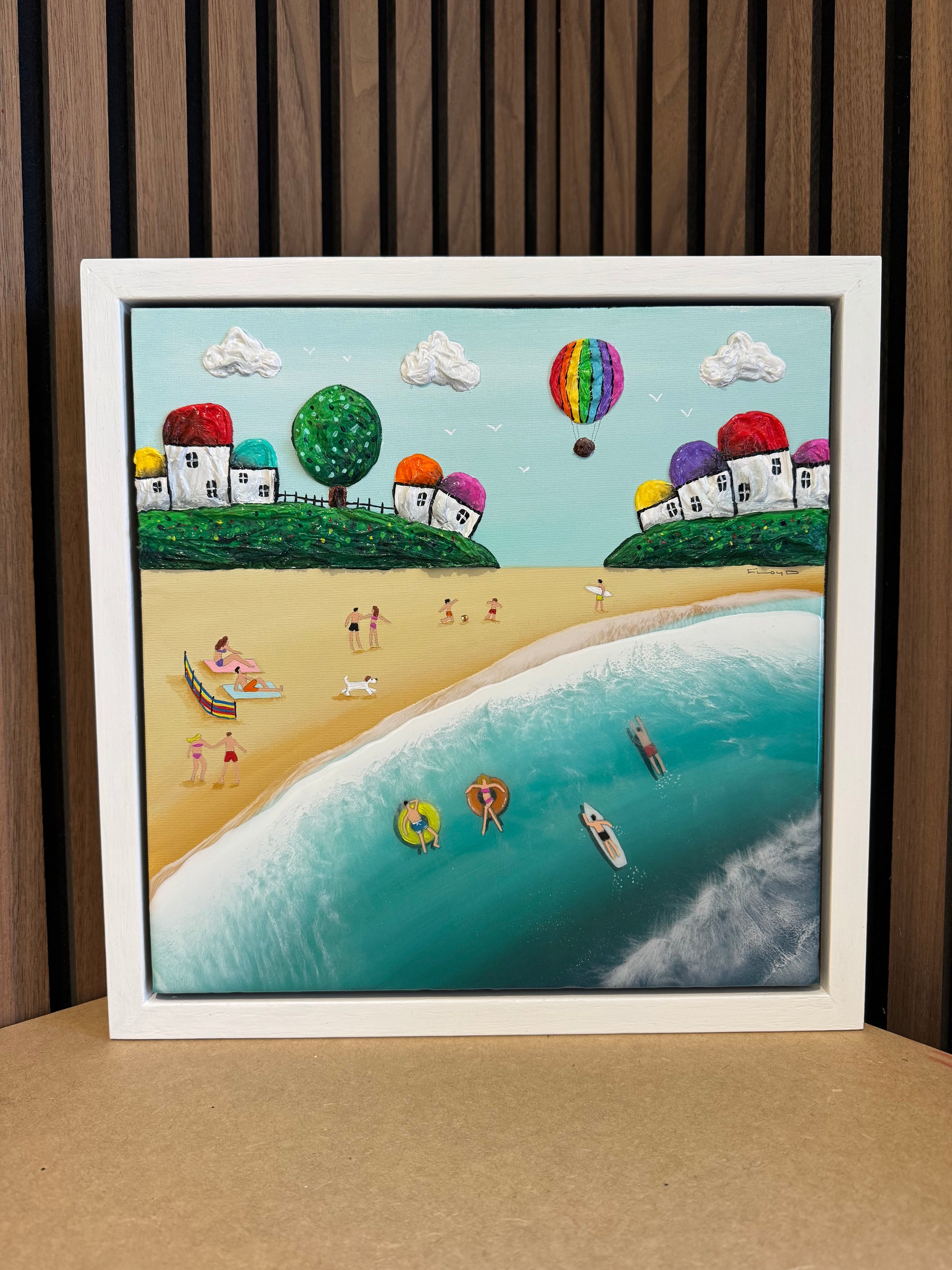 As a 3D artist with over a decade of experience working with resin, I have encountered numerous resin wave creations. However, I did not want to merely represent my surroundings and cherished childhood memories of beach holidays through waves alone. I recognized that the sea had to be a significant aspect of my work, but I also sought to incorporate beach life and the charm of quirky coastal towns. The rugged hills, unique cottages, lighthouses, and even camper vans are all hand-sculpted directly onto the canvas, rendering each painting completely unique. They even cast their own shadows, enhancing their lifelike quality in a manner that sets them apart from others.