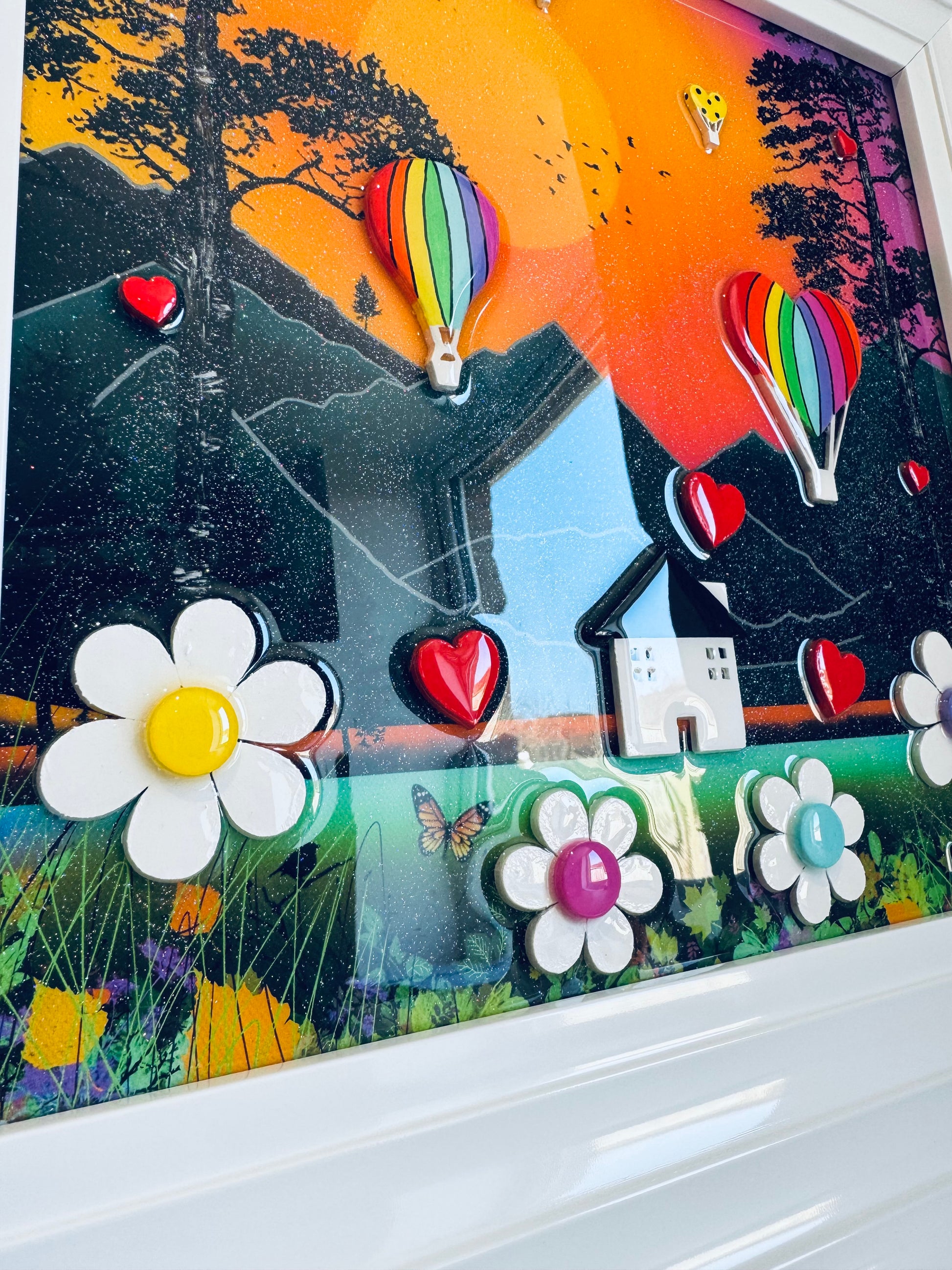 •Resin is applied as a medium using a brush just like the paint, the finish isn't that of a smooth tile, it will show some lumps and bumps and the diamond dust rocks on the painting, after all this is an original painting not a print.