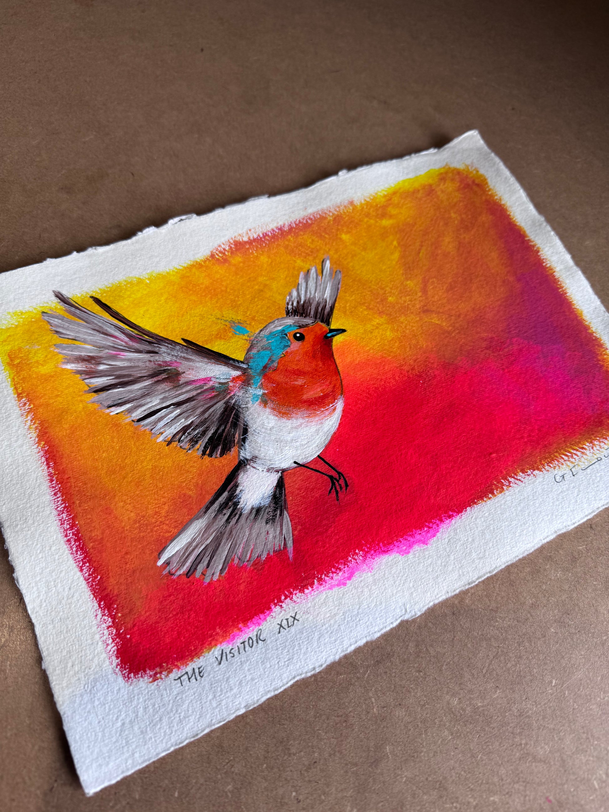 This is from a collection of painting sketches I create prior to a new painting, I test different backgrounds out and colour combinations before deciding which works best. Each one is completely unique and a one off.