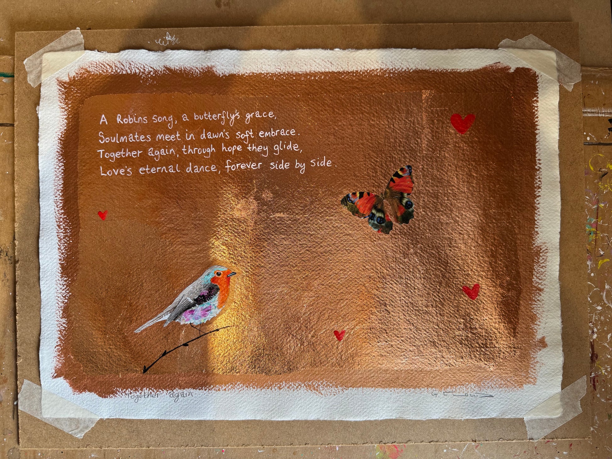 This is from a collection of painting sketches I create prior to a new painting, I test different backgrounds out and colour combinations before deciding which works best. Each one is completely unique and a one off.
