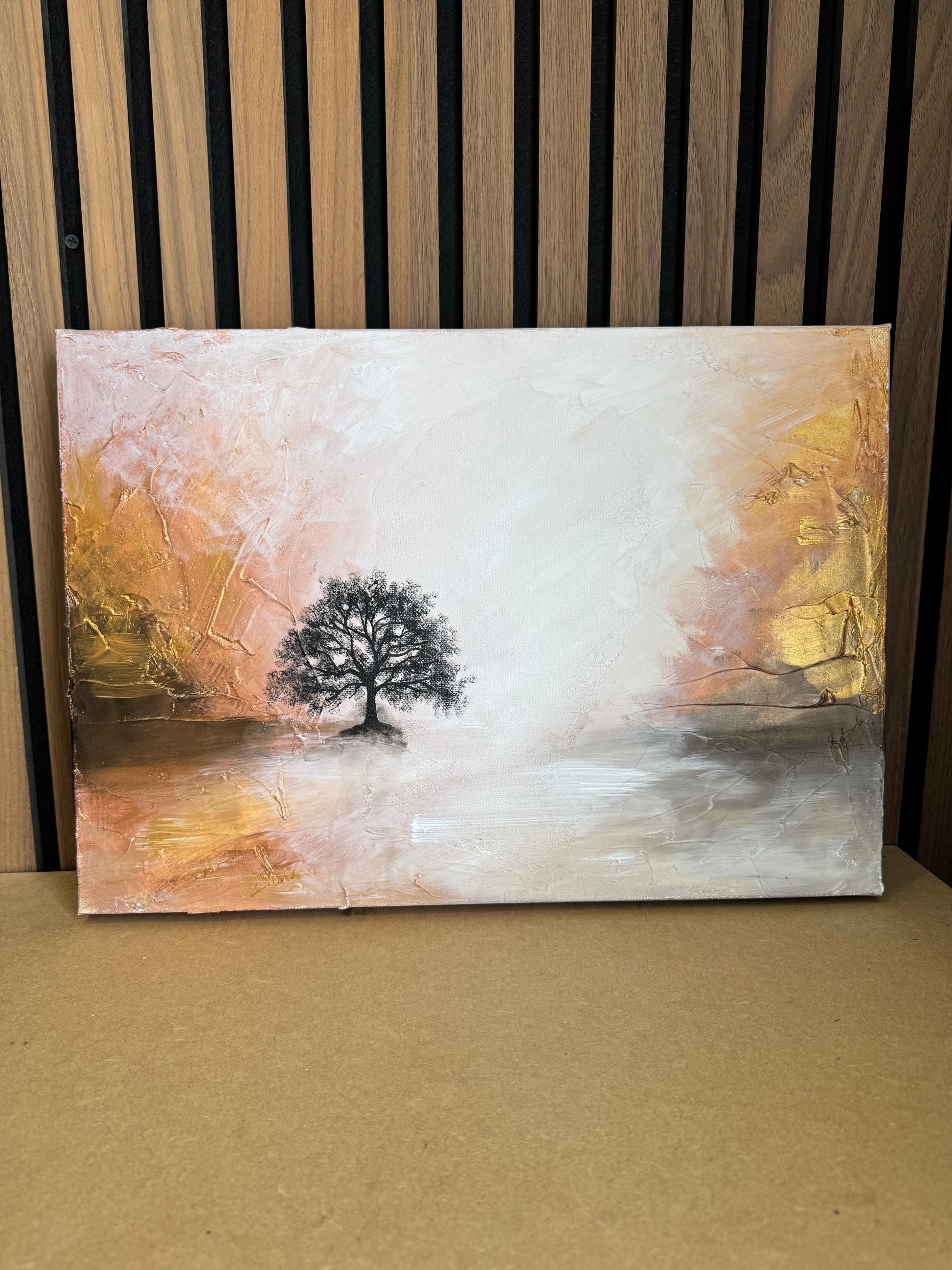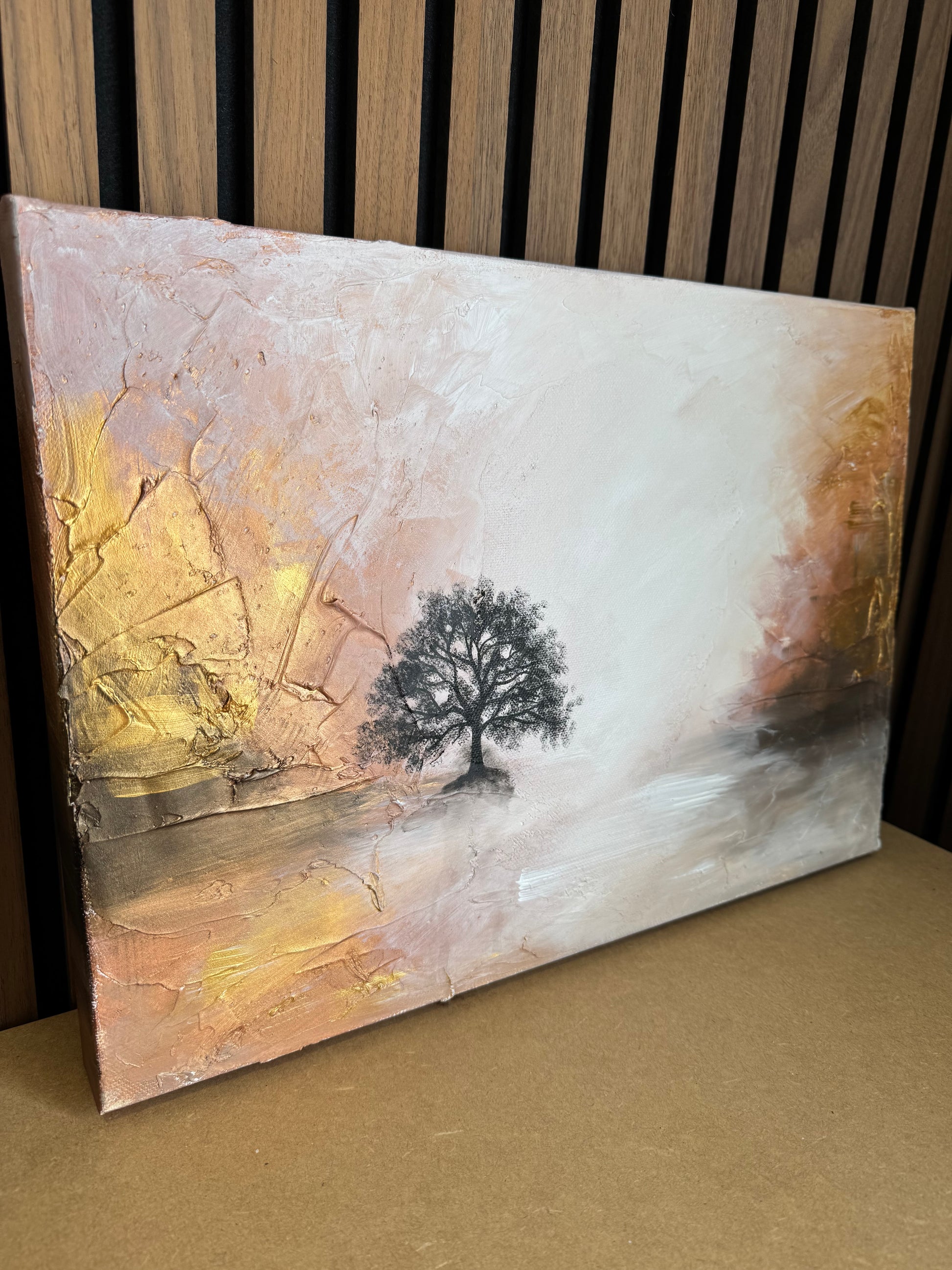This piece serves as a contemplative study of stillness and solitude in nature, exploring the profound impact of light and its interaction with the surrounding space. It invites viewers to engage their imaginations, creating a serene atmosphere that encourages introspection and reflection on the tranquility found within the natural world.