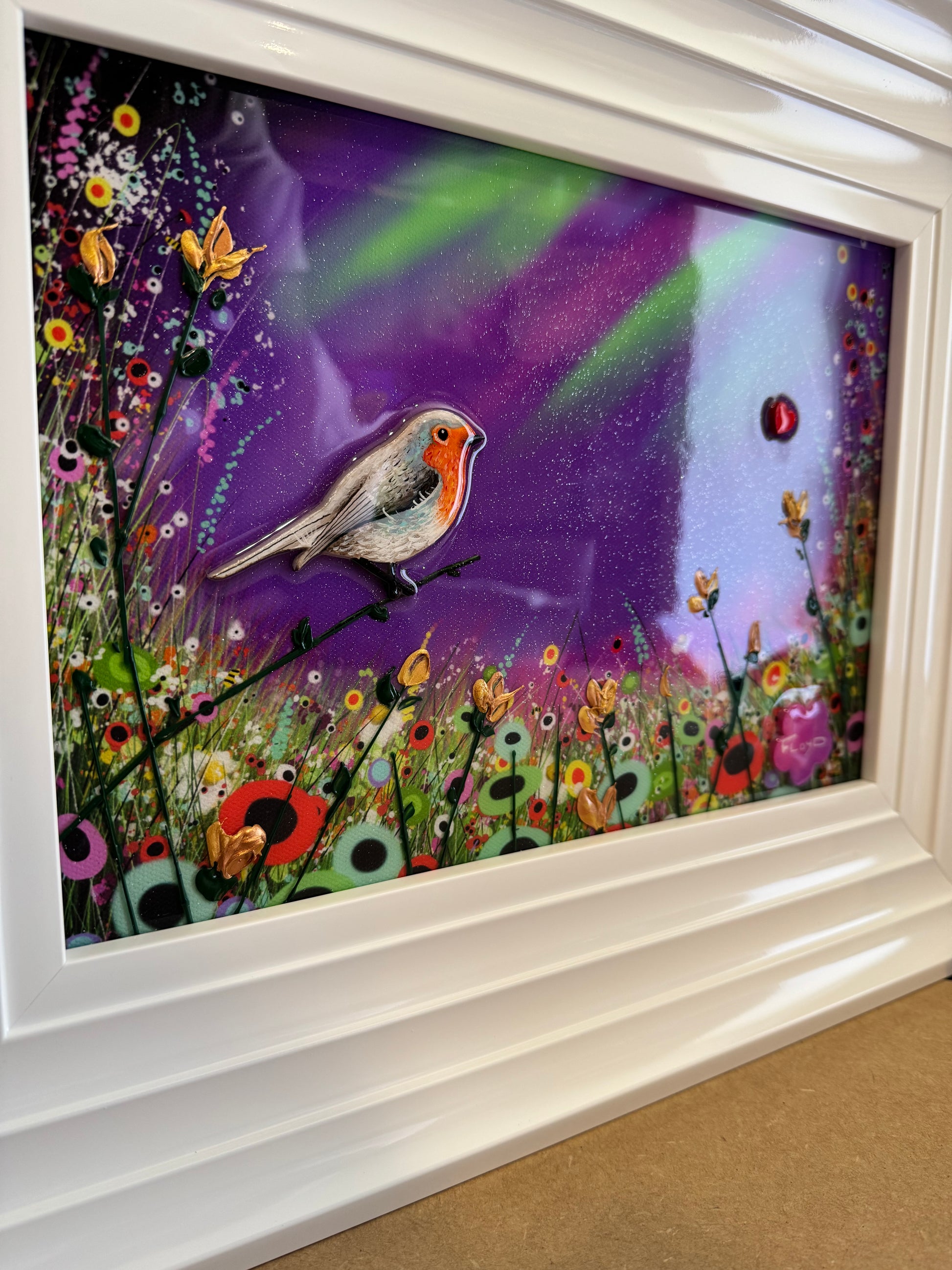 Each original comes in my trademark White glossy frame which is free of charge. You are more than welcome to reframe in something else once received. Damaged frames are non replaceable as they are FREE.