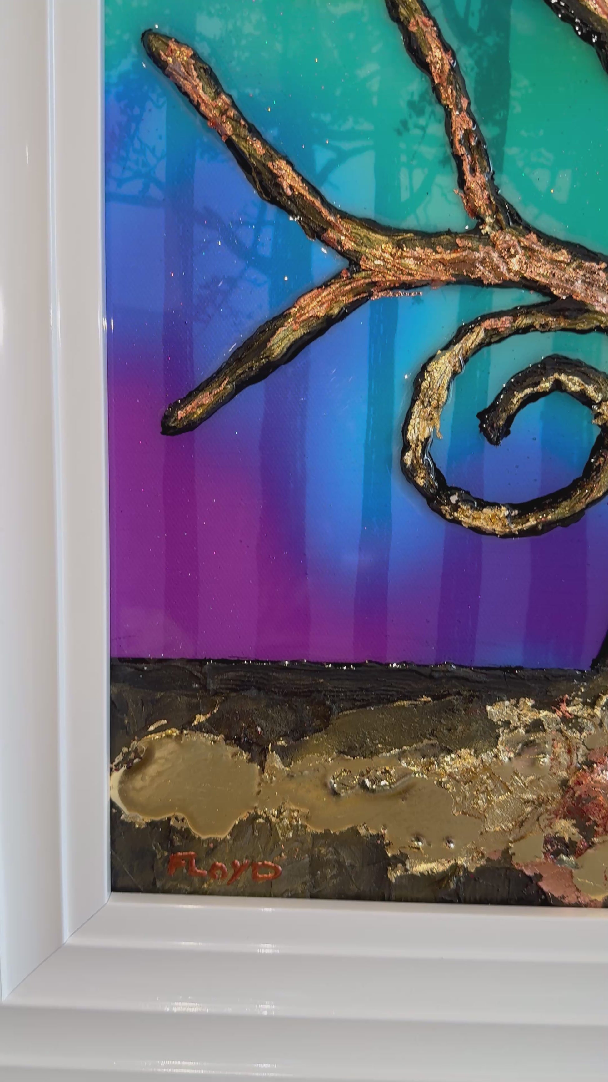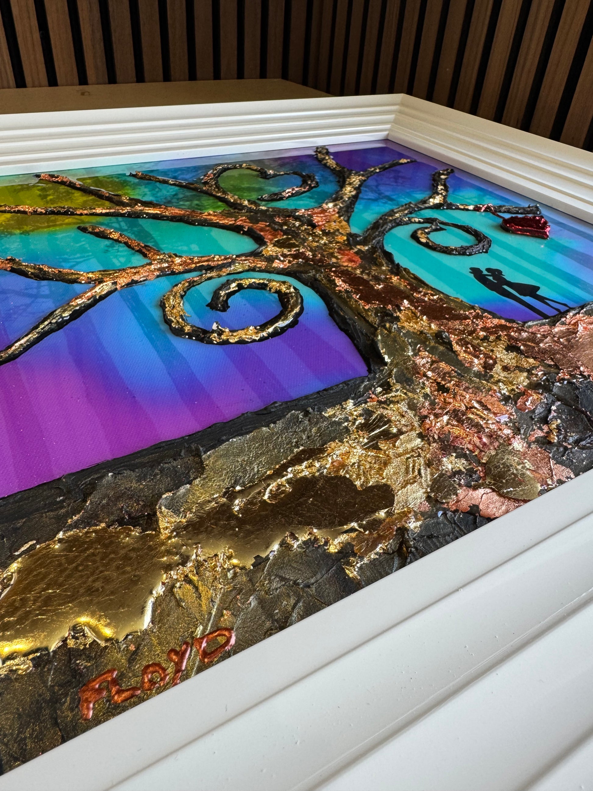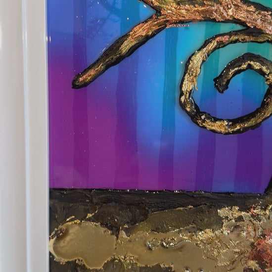 the tree is made up of a cement compound making it 3D and stand proud from the painting. I’ve also used Gold leaf to highlight sections