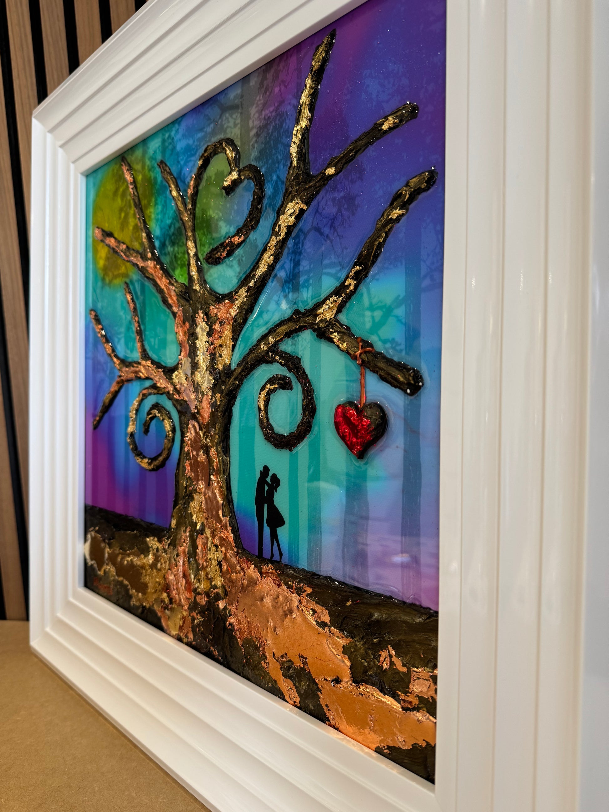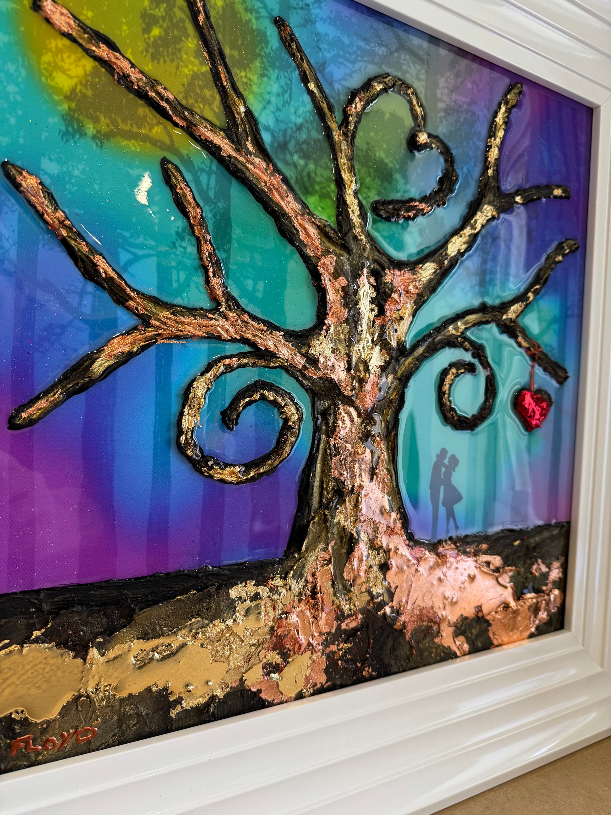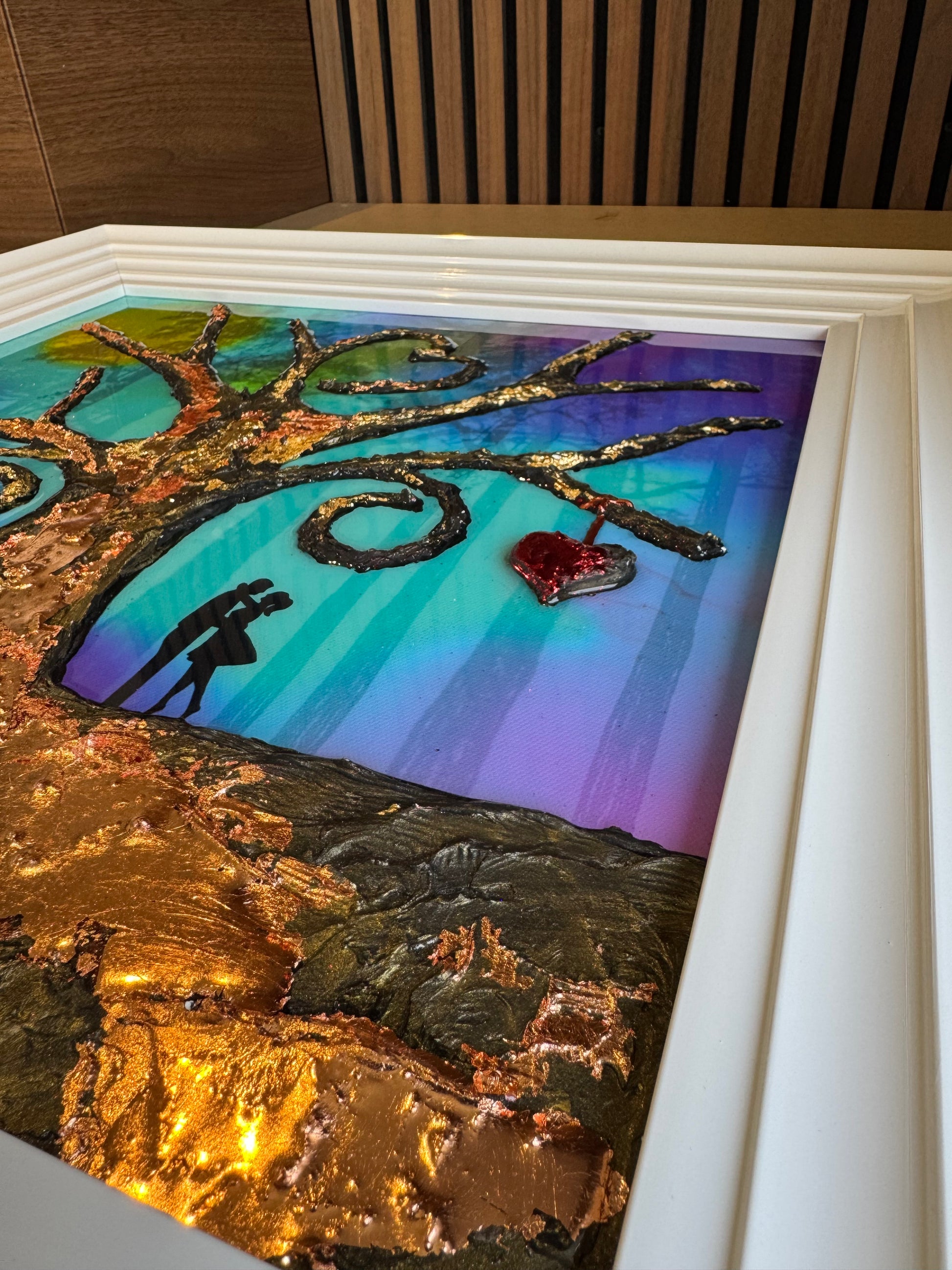 the tree is made up of a cement compound making it 3D and stand proud from the painting. I’ve also used Gold leaf to highlight sections