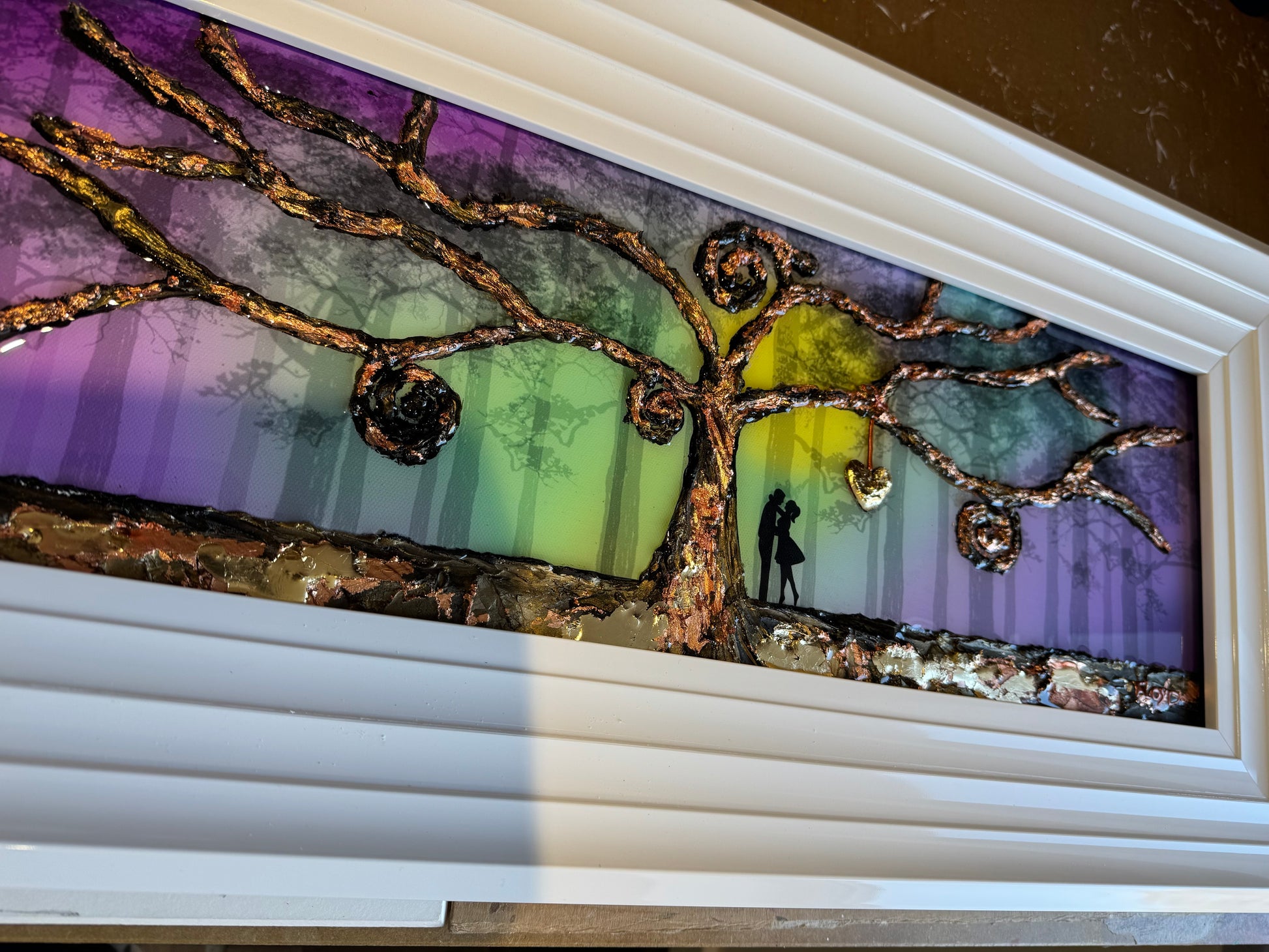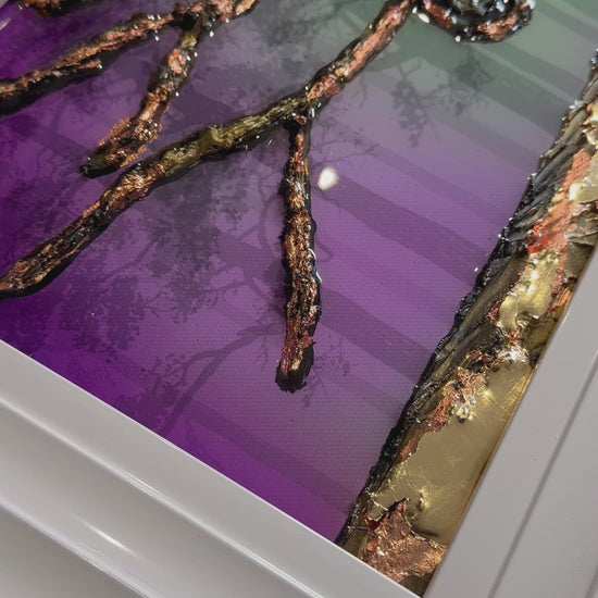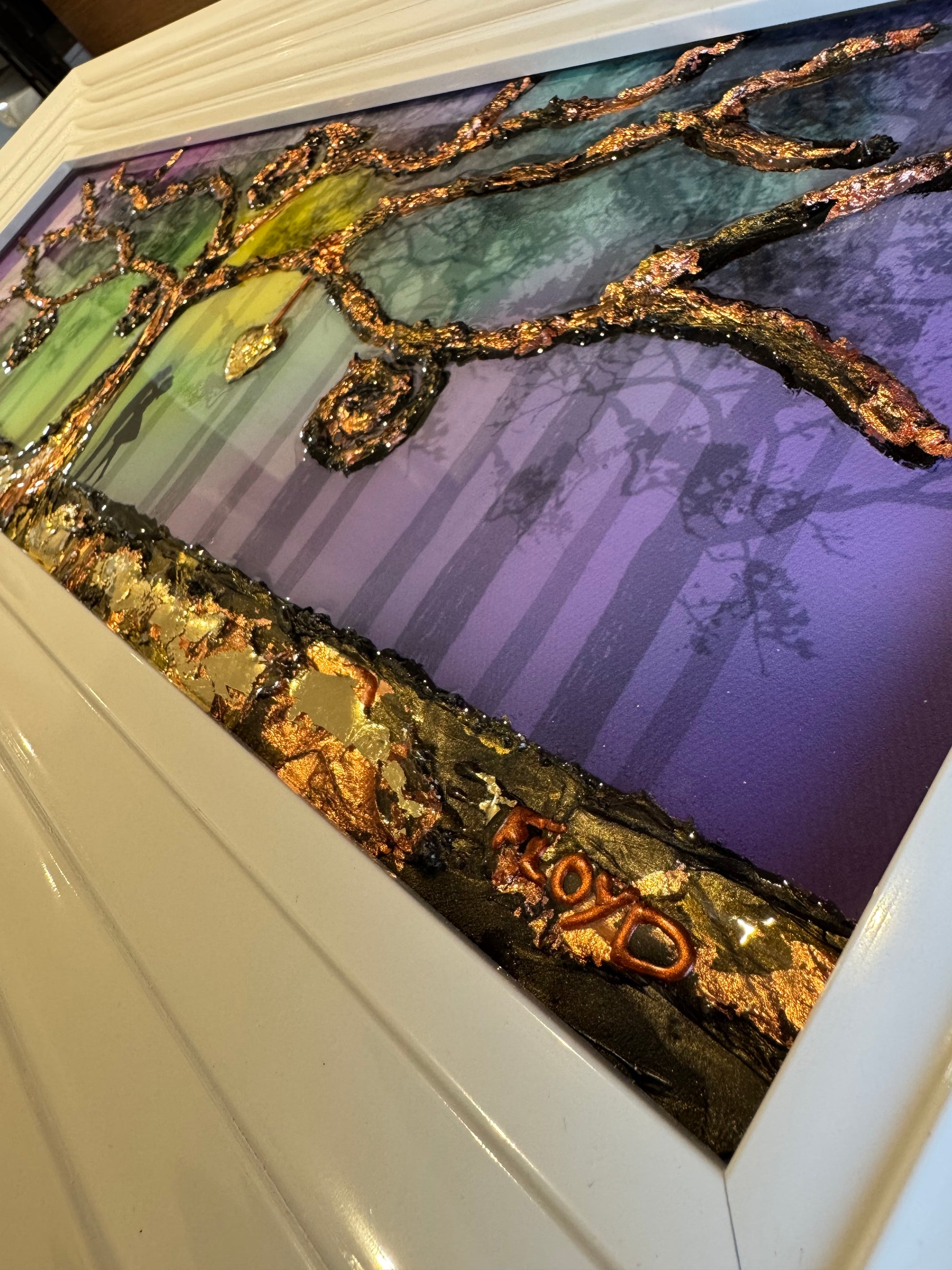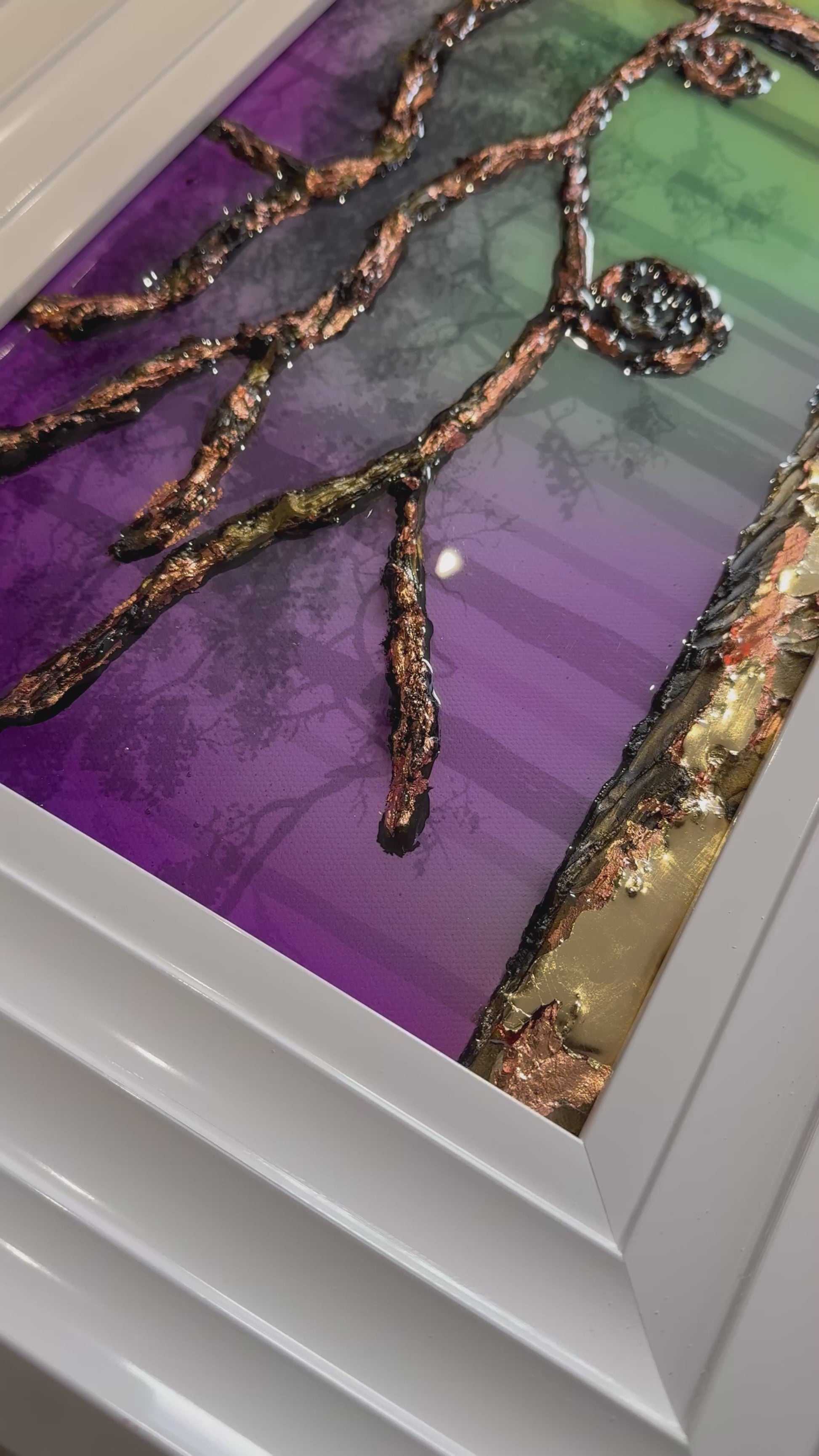 mixed media 3D resin. The tree is made up of a cement like compound with outstanding 3D properties. This image literally jumps off the canvas.