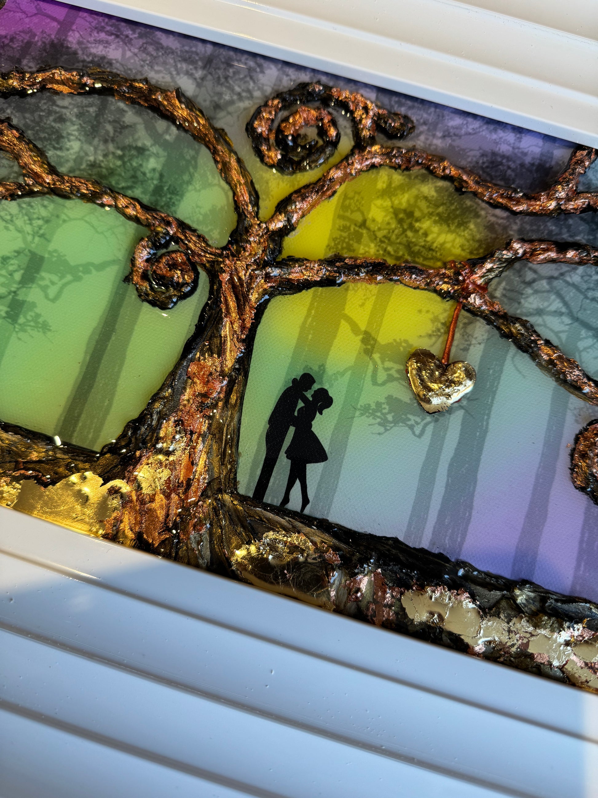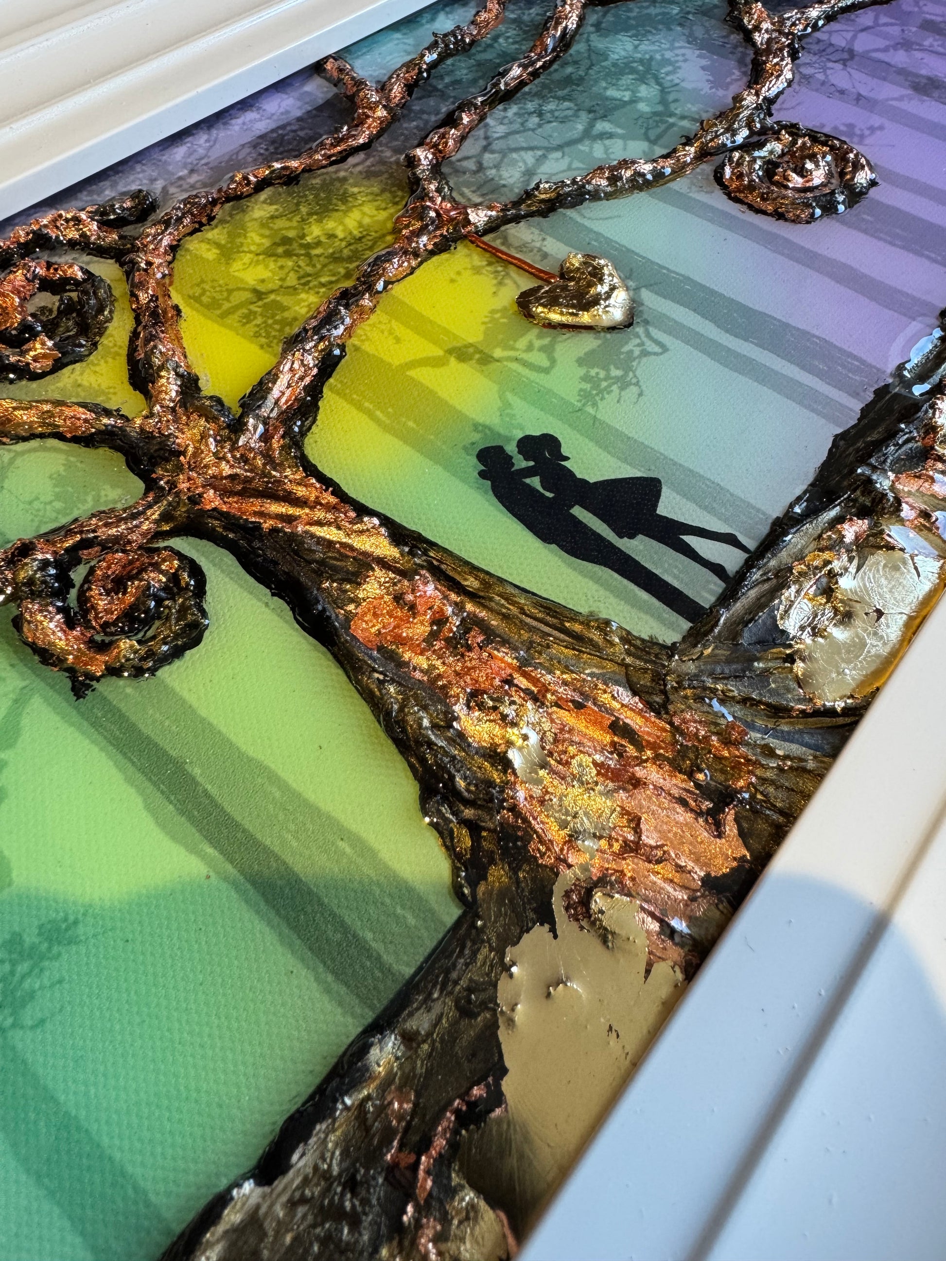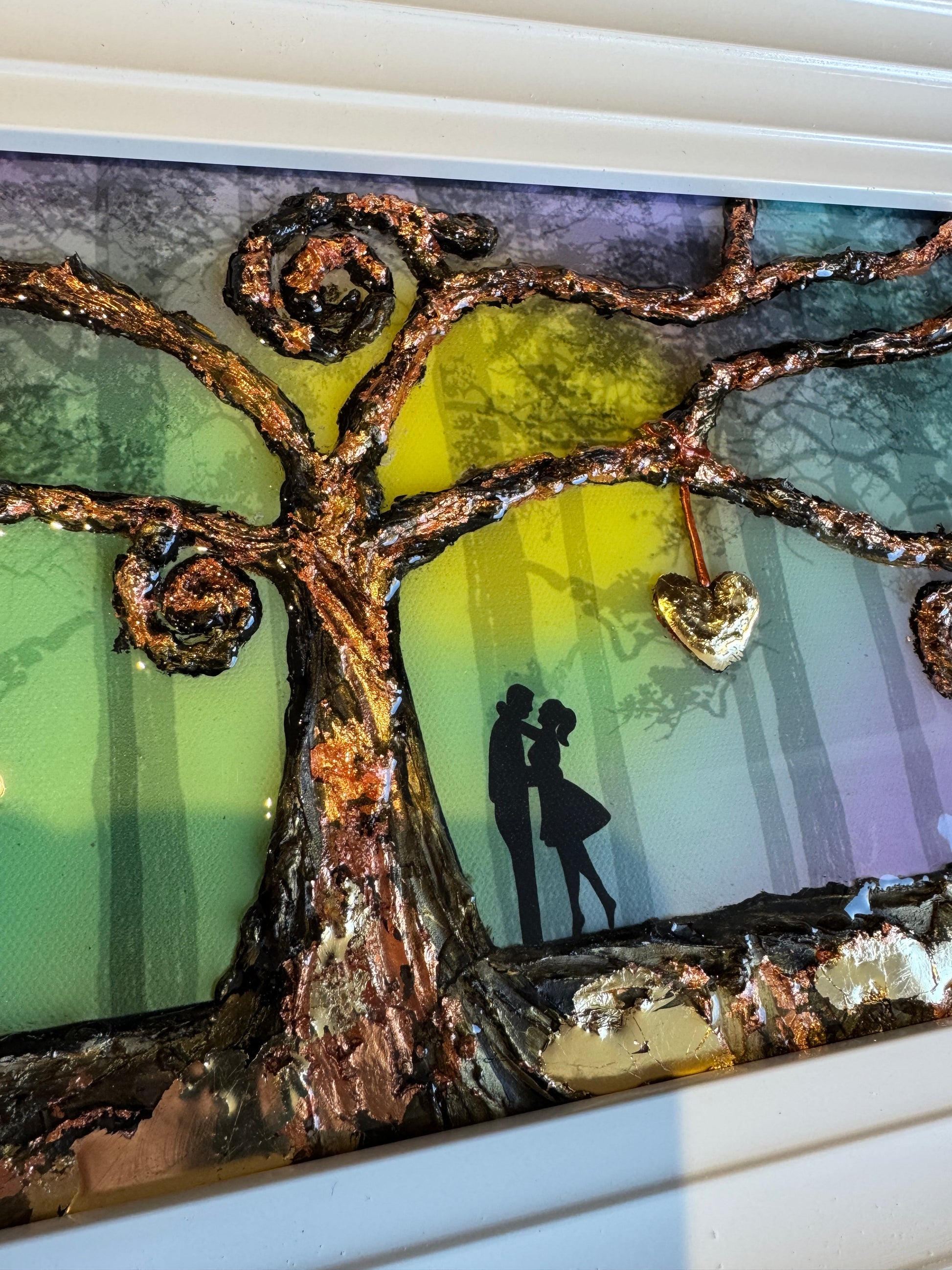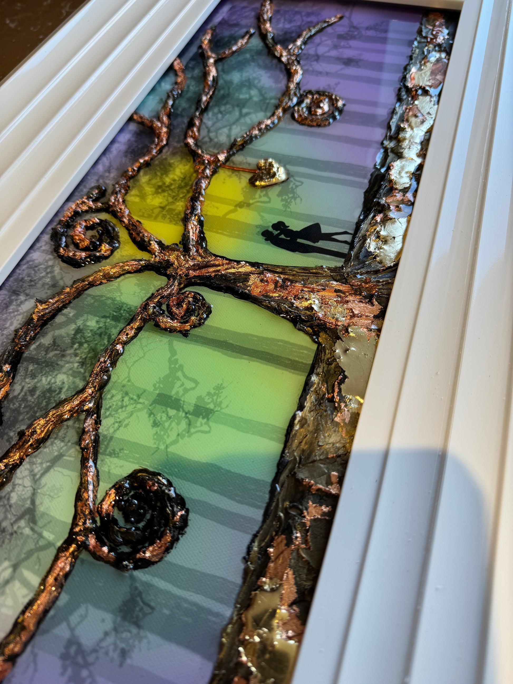 mixed media 3D resin. The tree is made up of a cement like compound with outstanding 3D properties. This image literally jumps off the canvas.